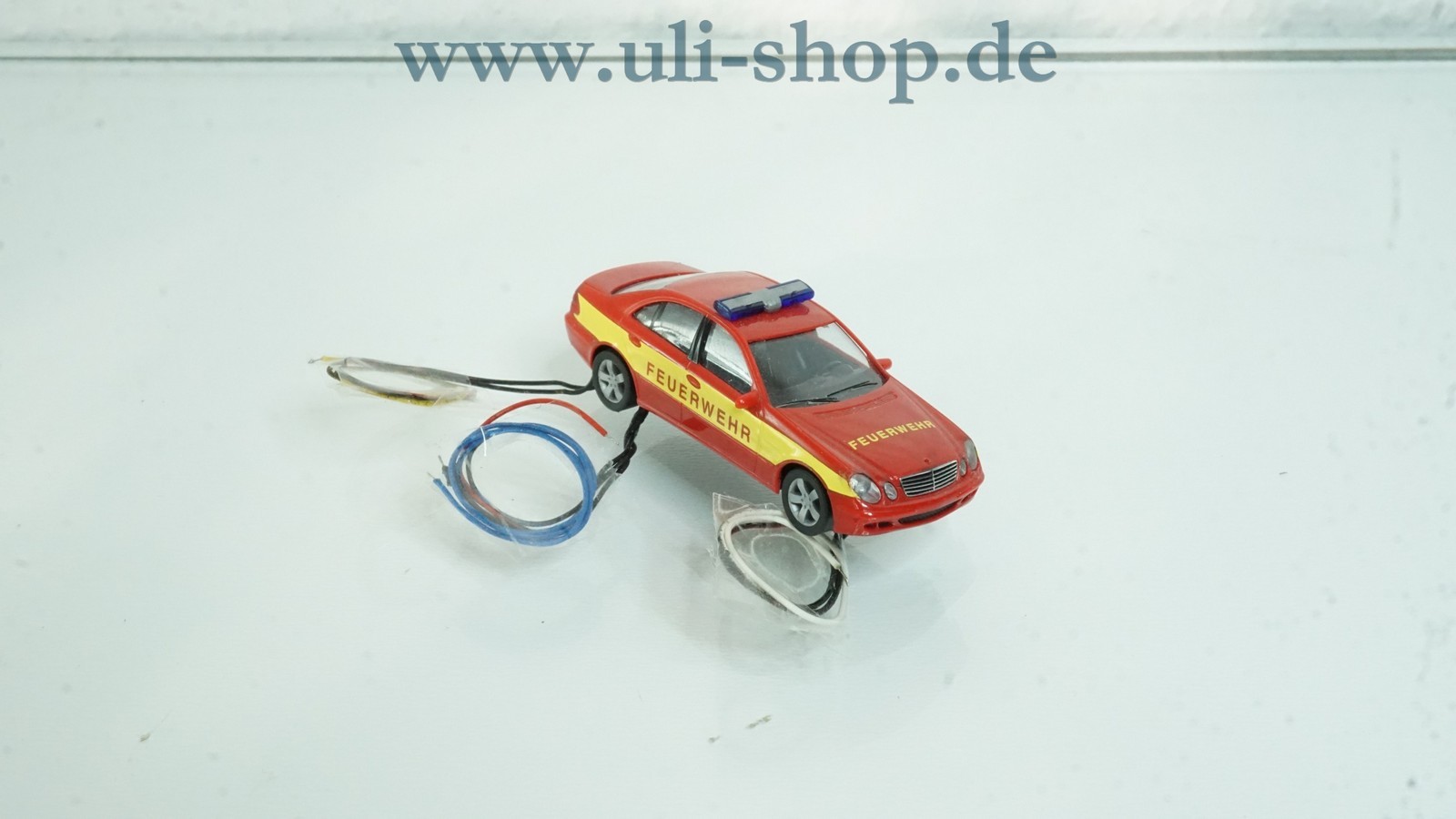 Herpa H0 Modellauto Mercedes E-Klasse Feuerwehr mit Licht. Der Artikel ist für den Betrieb mit Gleichstrom vorgesehen. Die Originalverpackung ist leider nicht mehr vorhanden.