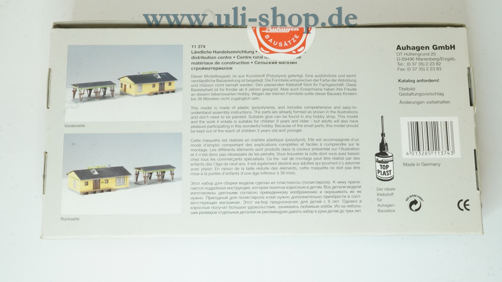 Auhagen H0 Modellhaus mit der Artikelnummer 11 374 Ländliche Handelseinrichtung. Die Originalverpackung ist vorhanden.