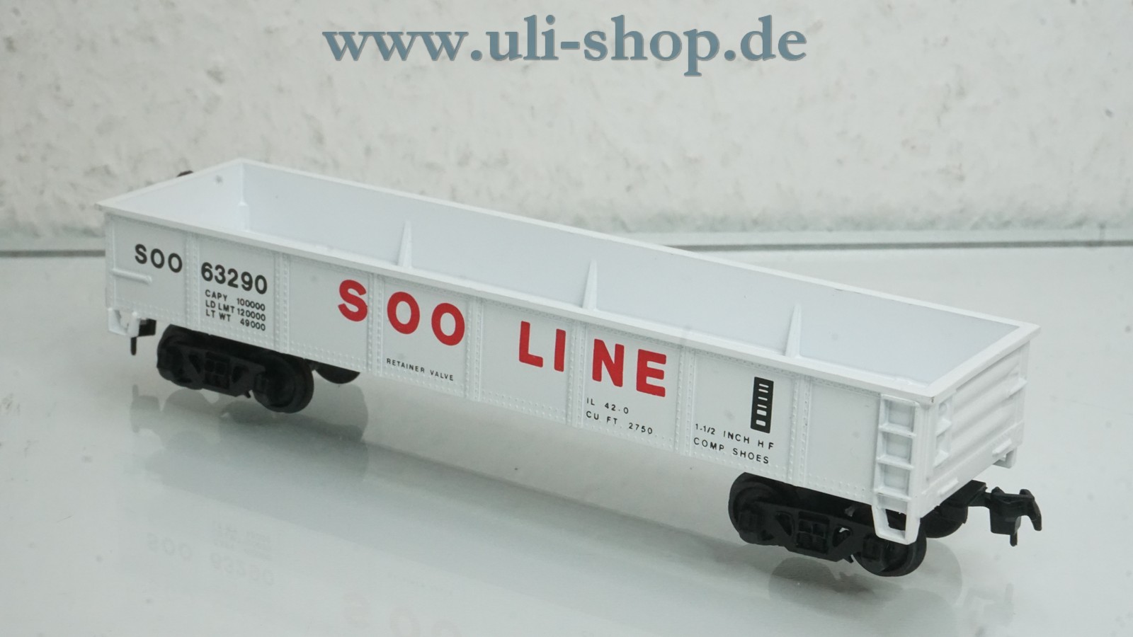 Bachmann H0 Güterwagen mit der Artikelnummer 43-1002-K8 Gondola der SOO LINE. Der Artikel ist für den Betrieb mit Gleichstrom vorgesehen. Die Originalverpackung ist vorhanden.