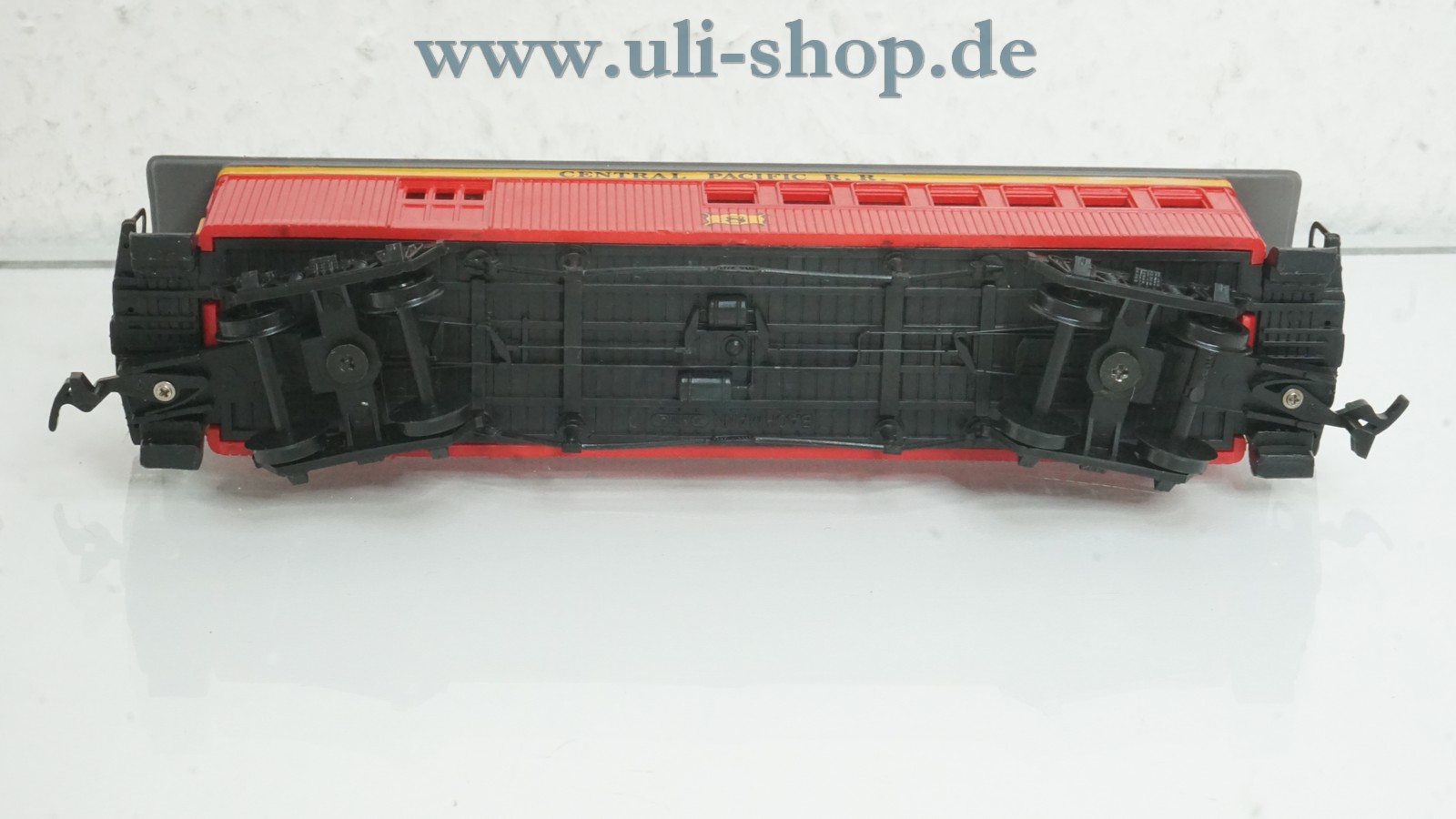 Bachmann H0 Personenwagen mit der Artikelnummer 72824 COMBINE Plattformwagen mit Gepäckabteil der Central Pacific. Der Artikel ist für den Betrieb mit Gleichstrom vorgesehen. Die Originalverpackung ist vorhanden.