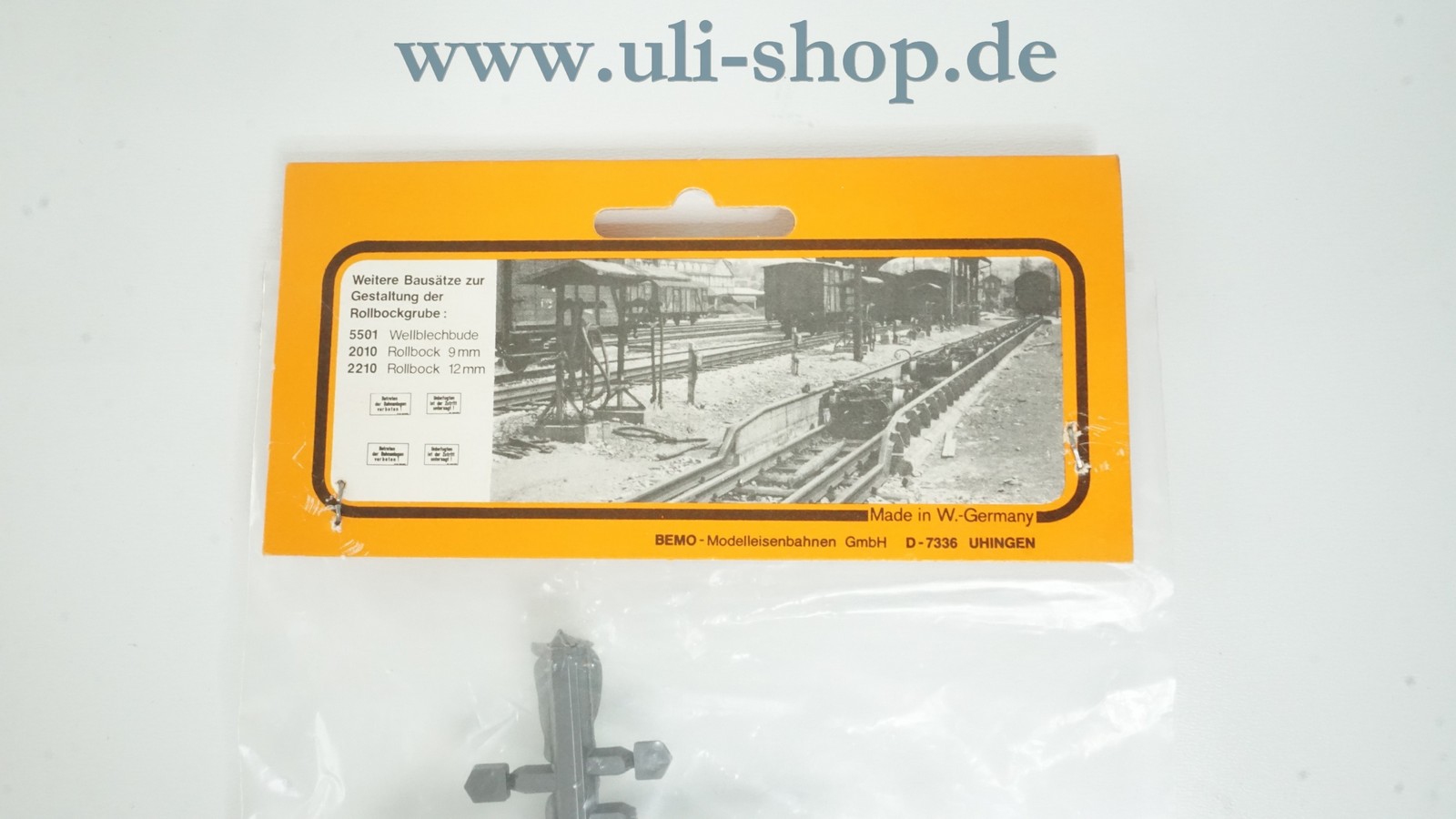 Bemo H0e mit der Artikelnummer 5510 Bausatz Rollbock-Umsetzanlage von H0 auf H0e. Die Originalverpackung ist vorhanden. Die Spurweite entspricht 9mm (Spur N).