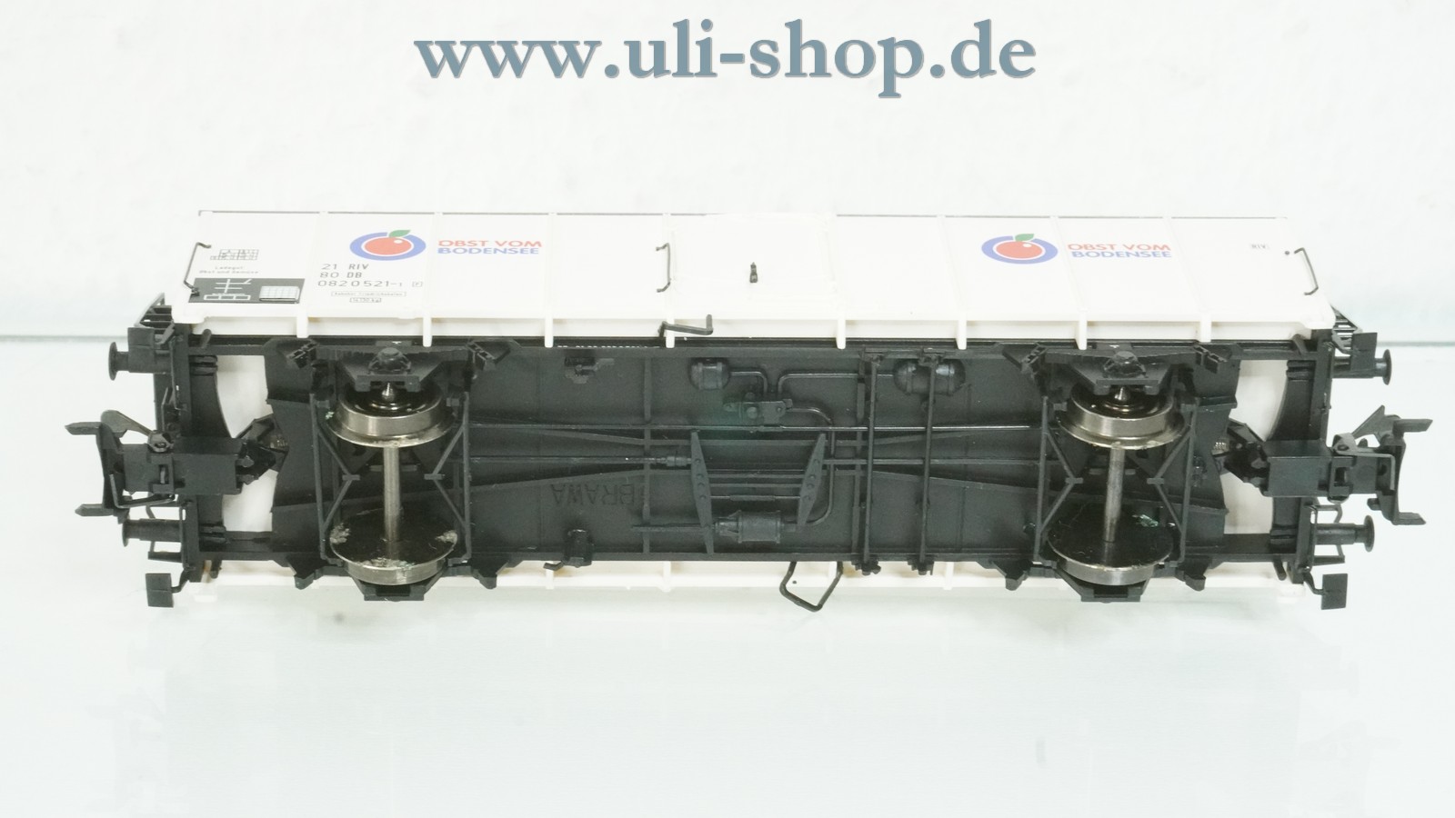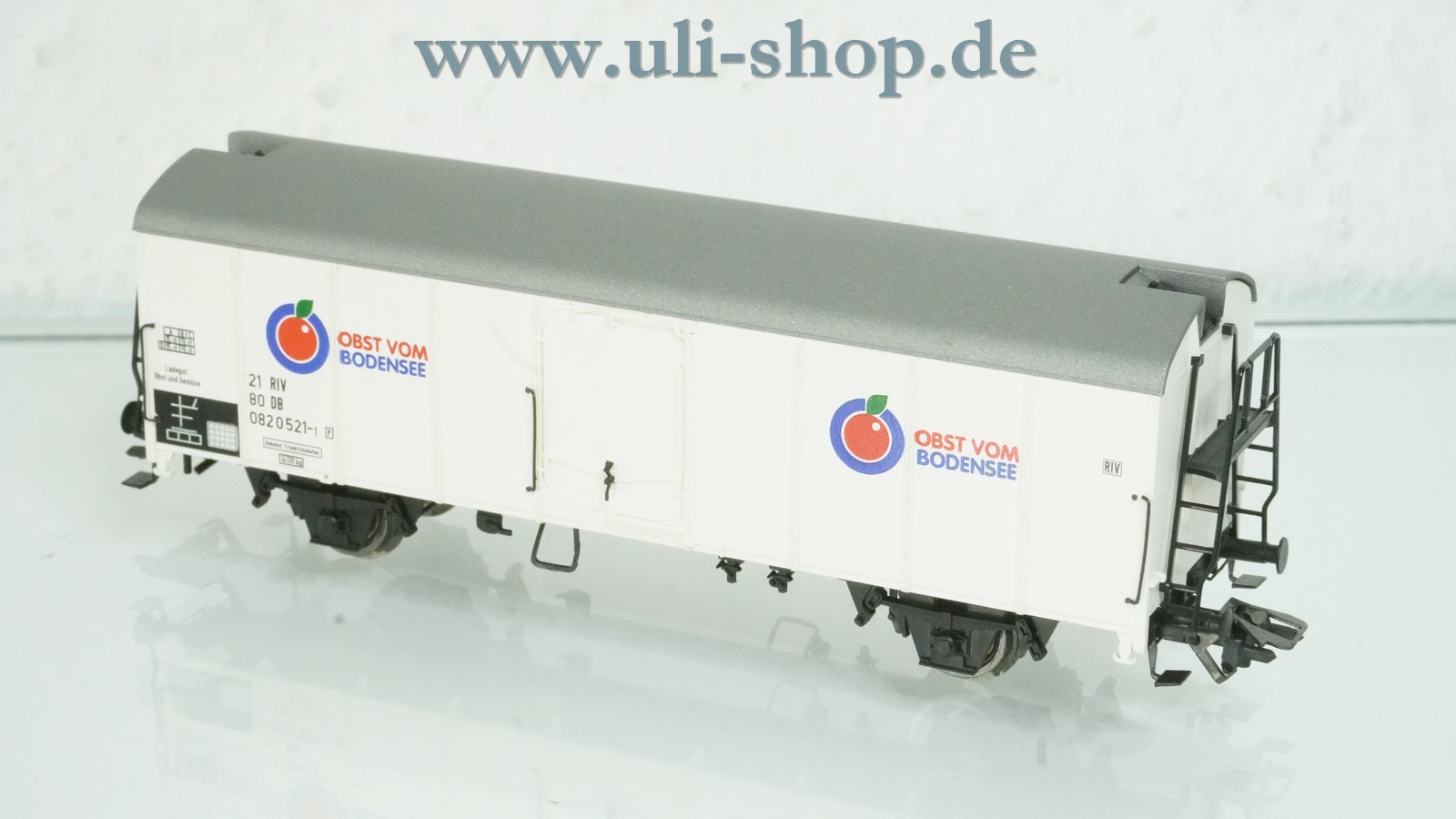 Brawa H0 Güterwagen mit der Artikelnummer 2049 Kühlwagen Obst vom Bodensee der DB. Der Artikel ist für den Betrieb mit Wechselstrom vorgesehen. Die Originalverpackung ist vorhanden.