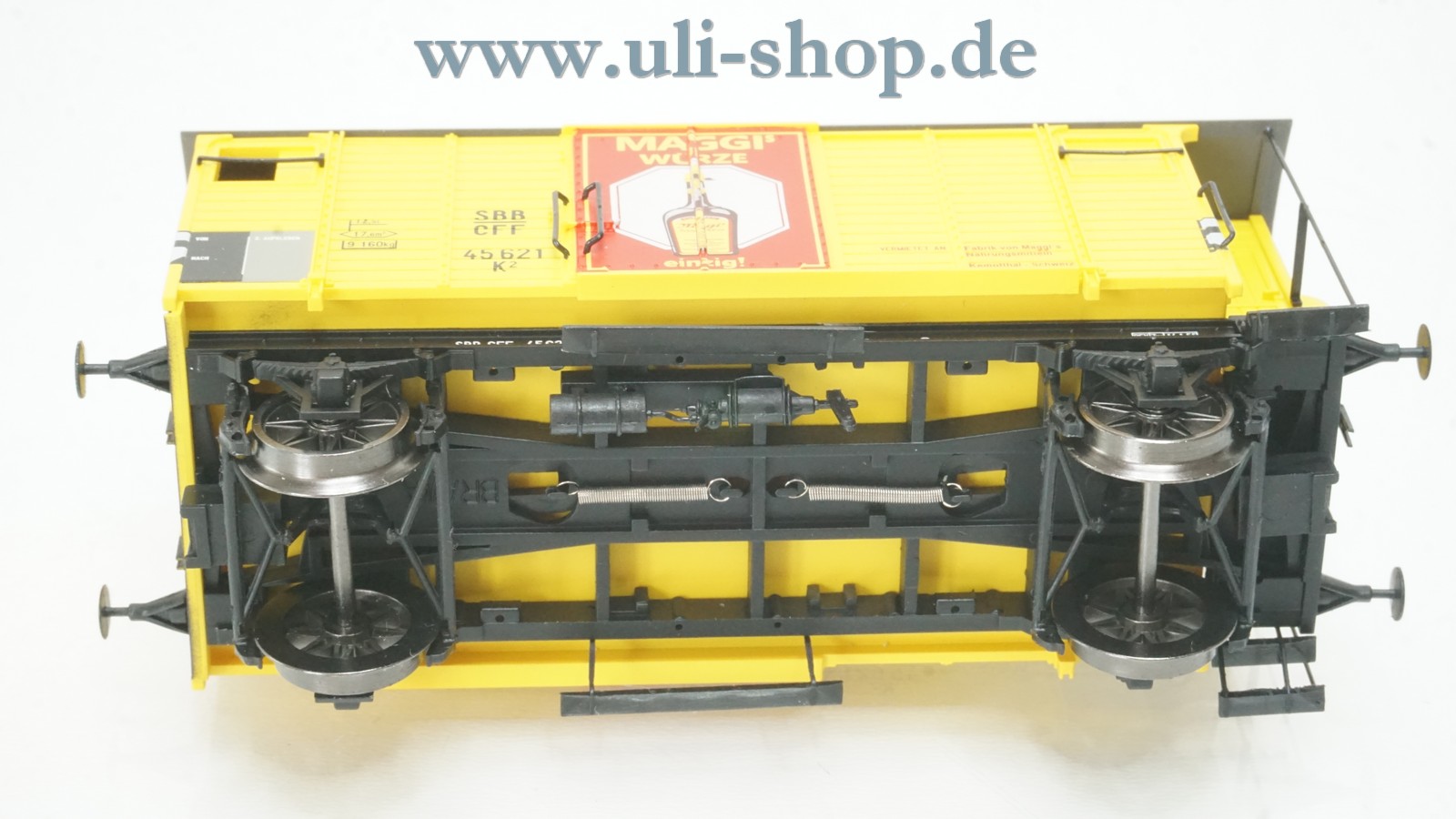 Brawa H0 Güterwagen mit der Artikelnummer 47831 gedeckt der SBB MAGGI Epoche III. Der Artikel ist für den Betrieb mit Wechselstrom vorgesehen. Die Originalverpackung ist vorhanden.