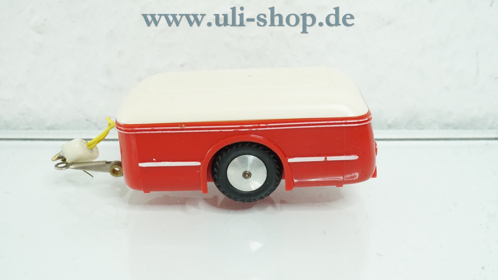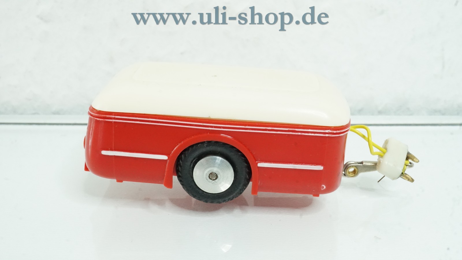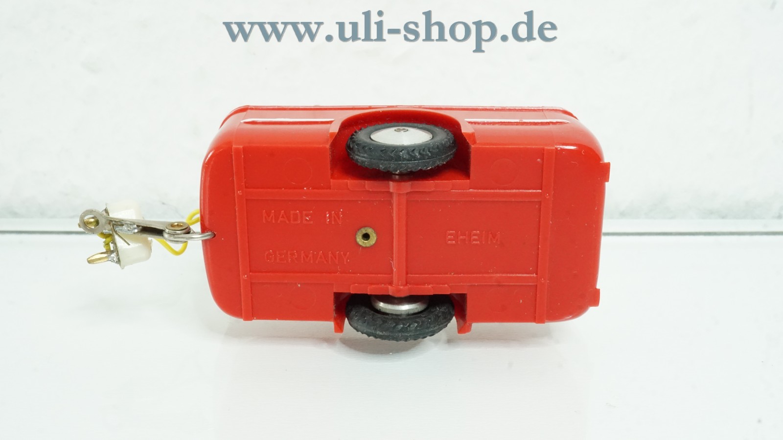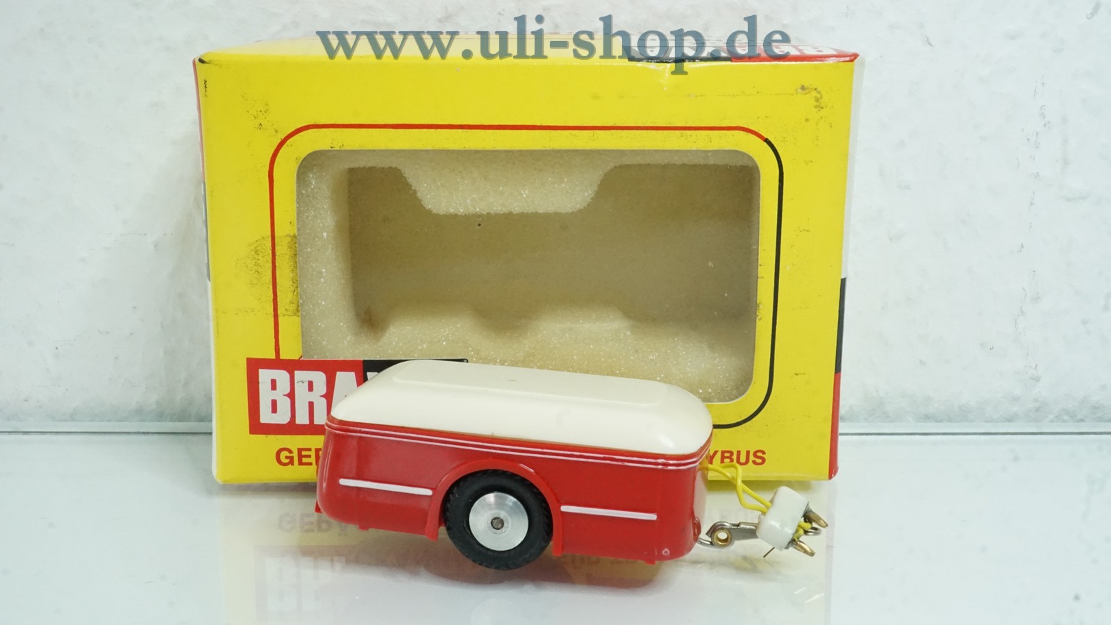 Brawa H0 Modellauto mit der Artikelnummer 6107 Gepäckanhänger rot für Trolleybus. Der Artikel ist für den Betrieb mit Wechselstrom vorgesehen. Die Lok ist analog, sie kann daher nicht auf digital gesteuerten Anlagen fahren. Die Originalverpackung ist vorhanden.