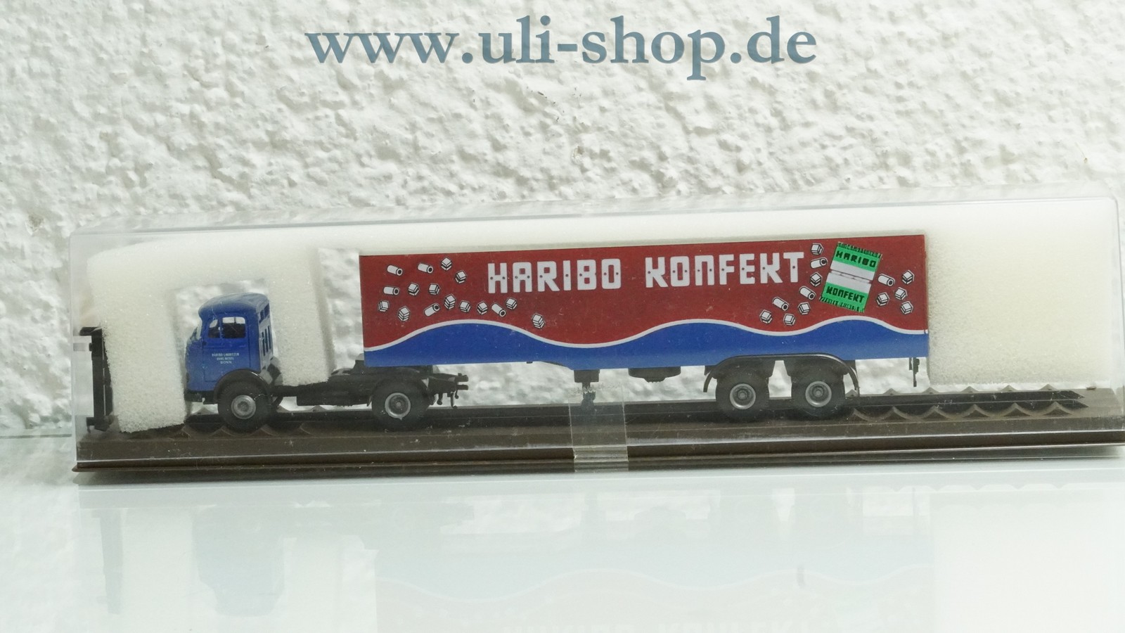 Brekina H0 Modellauto mit der Artikelnummer 4851 LKW Haribo. Die Originalverpackung ist vorhanden.