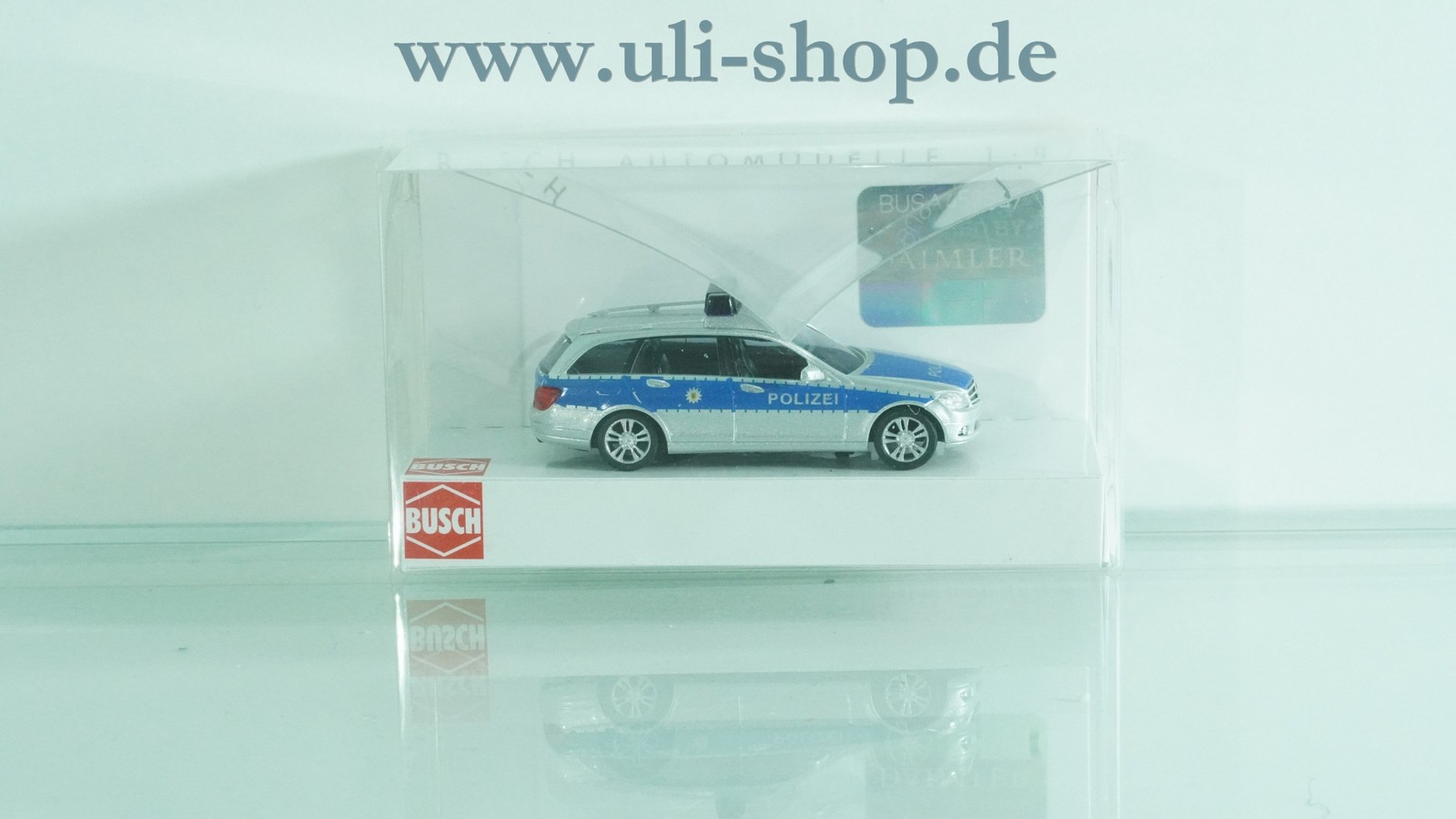 Busch H0 Modellauto Polizei MB C-Klasse BW. Die Originalverpackung ist vorhanden.
