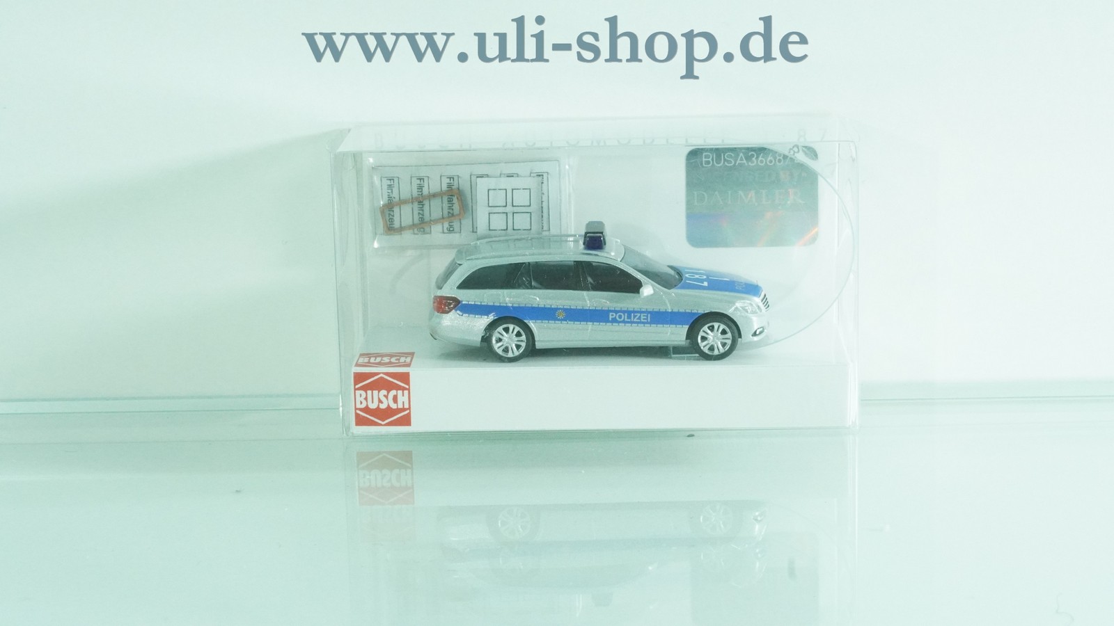 Busch H0 Modellauto Polizei MB E-Klasse T-Modell Filmfahrzeug. Die Originalverpackung ist vorhanden.