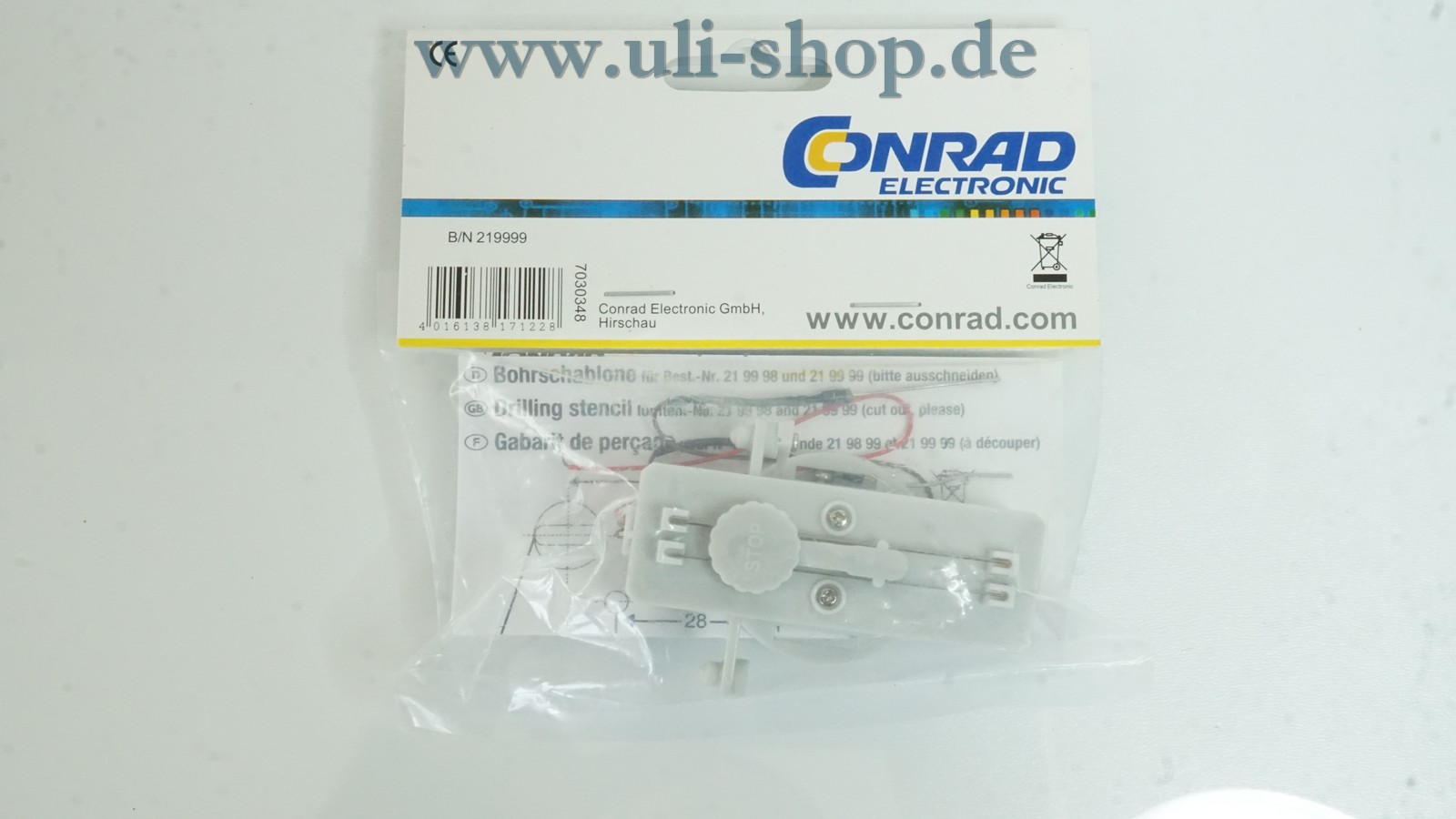 Conrad H0 mit der Artikelnummer 219999 Weichenantrieb mit Endabschaltung. Die Originalverpackung ist vorhanden.