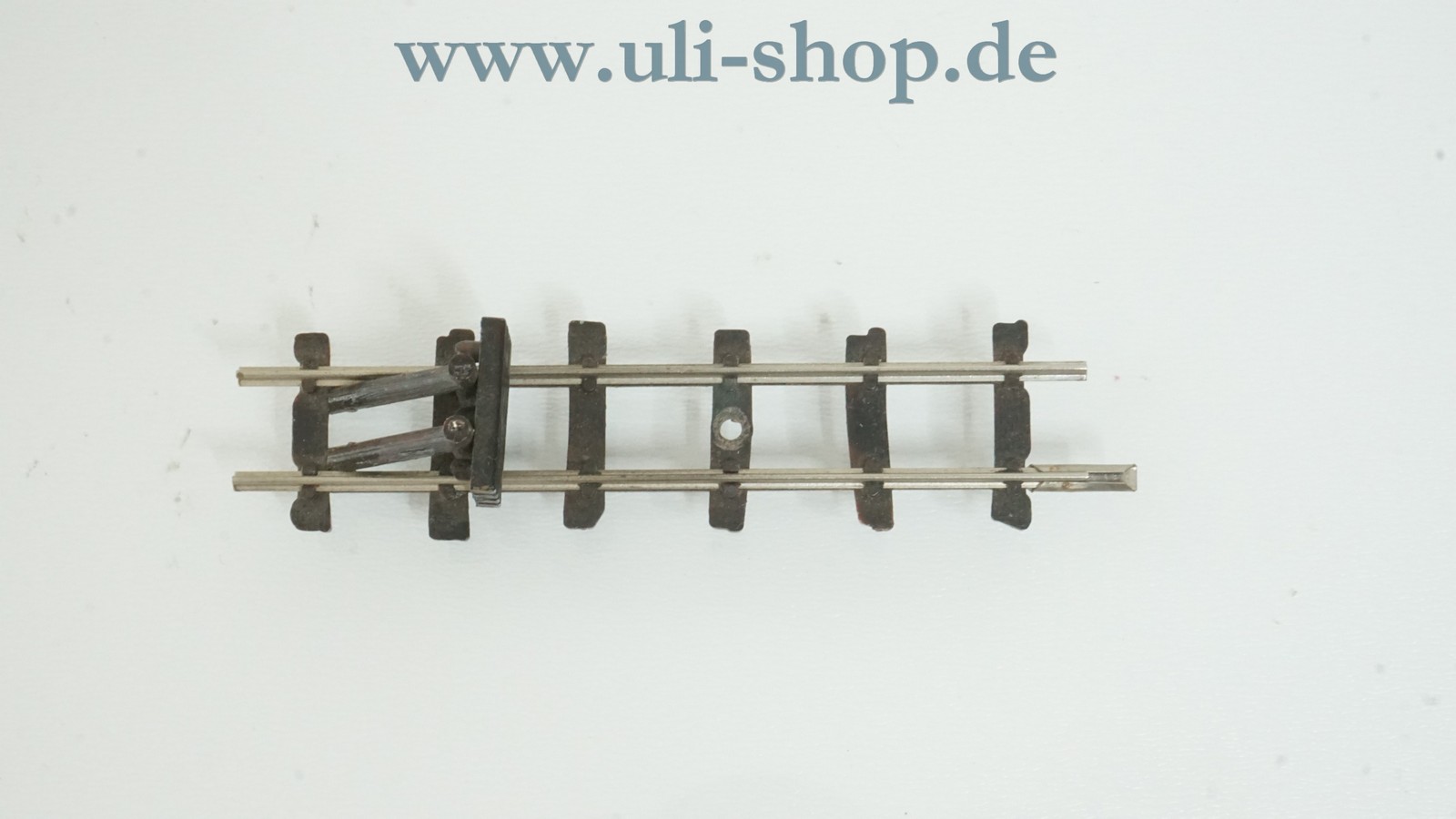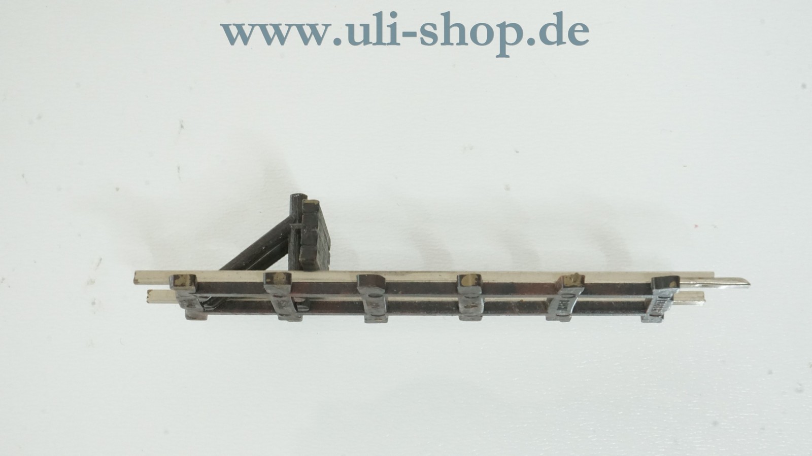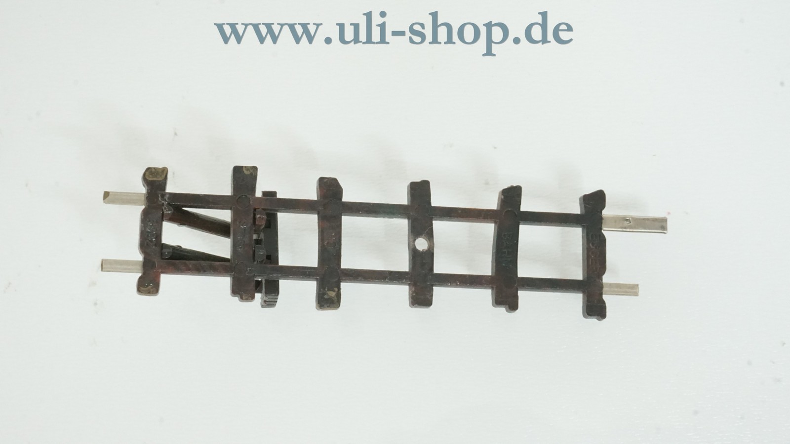 Egger H0e Gleismaterial mit der Artikelnummer 3002 gerade mittel mit dunklem Prellbock. Der Artikel ist für den Betrieb mit Gleichstrom vorgesehen. Die Originalverpackung ist leider nicht mehr vorhanden. Die Spurweite entspricht 9mm (Spur N).
