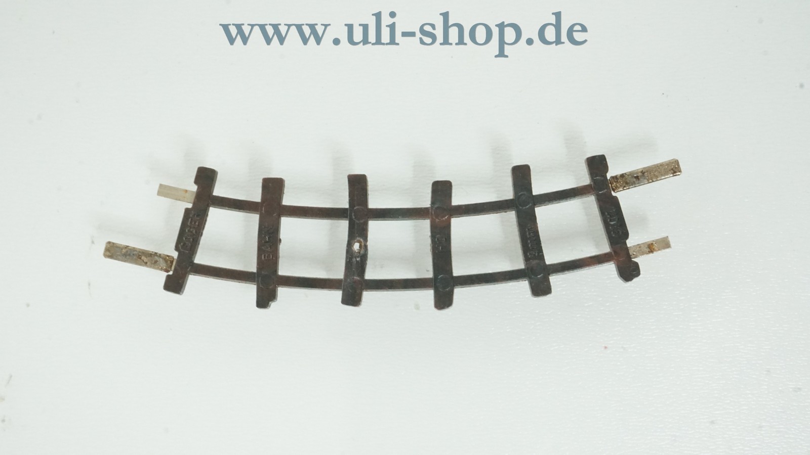 Egger H0e Gleismaterial mit der Artikelnummer 3102 gebogen. Der Artikel ist für den Betrieb mit Gleichstrom vorgesehen. Die Originalverpackung ist leider nicht mehr vorhanden. Die Spurweite entspricht 9mm (Spur N). Bei dem Artikelbild handelt es sich um ein Musterbild, welches beispielhaft den Zustand des Artikels darstellen soll.