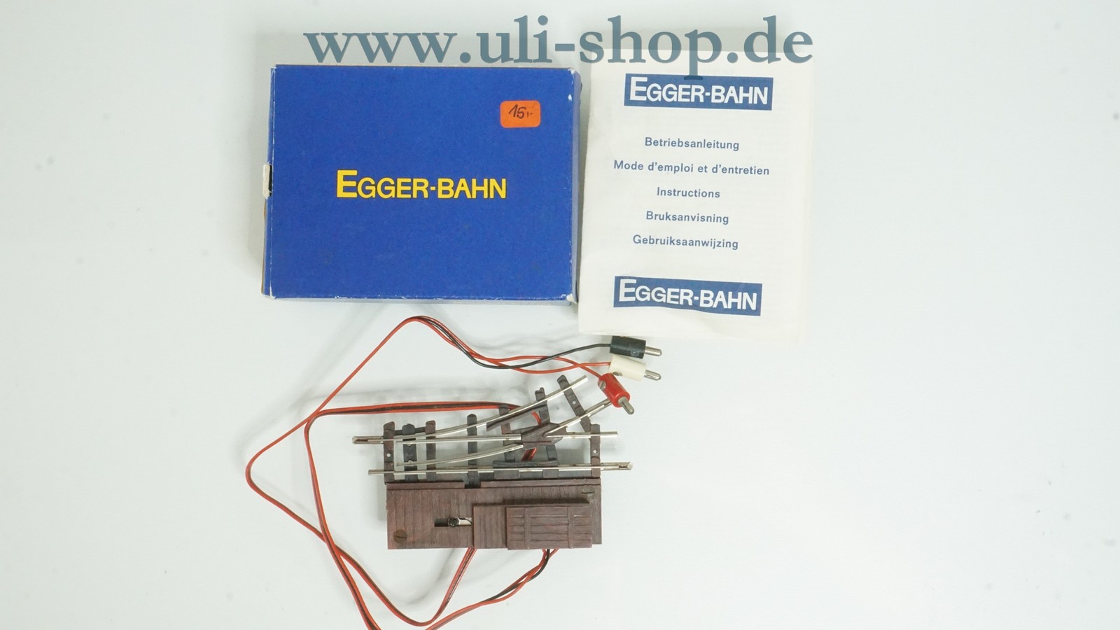 Egger H0e Gleismaterial mit der Artikelnummer 3602 elektrische Weiche links. Der Artikel ist für den Betrieb mit Gleichstrom vorgesehen. Die Originalverpackung ist vorhanden. Die Spurweite entspricht 9mm (Spur N).