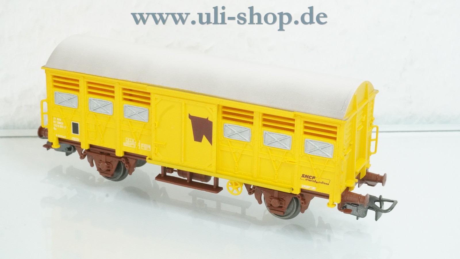 Electrotren H0 Güterwagen mit der Artikelnummer 1380 Viehwagen der Renfe Gelb. Der Artikel ist für den Betrieb mit Gleichstrom vorgesehen. Die Originalverpackung ist vorhanden. Die Verpackung kann beklebt sein.
