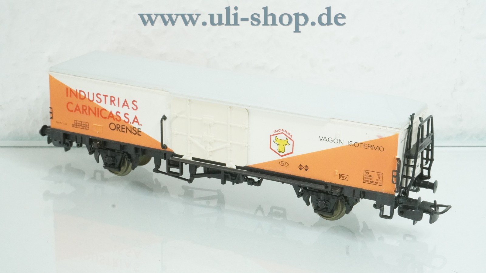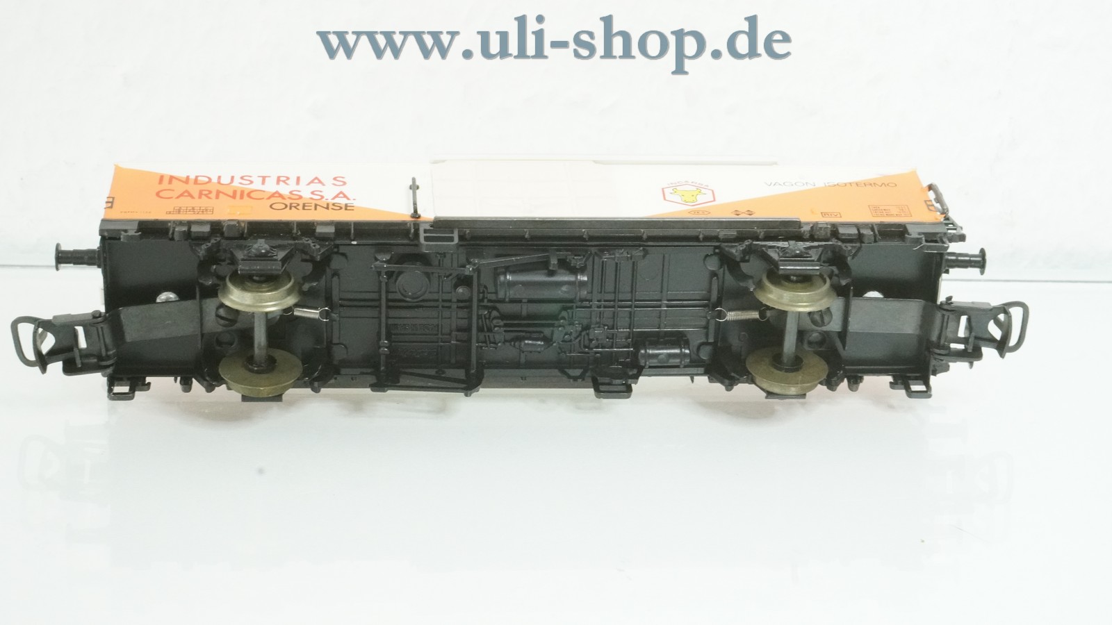 Electrotren H0 Güterwagen mit der Artikelnummer 1471 Kühlwagen INDUSTRIAS CARNICAS S. A. ORENSE. Der Artikel ist für den Betrieb mit Gleichstrom vorgesehen. Die Originalverpackung ist vorhanden. Der Verpackung kann beklebt sein.