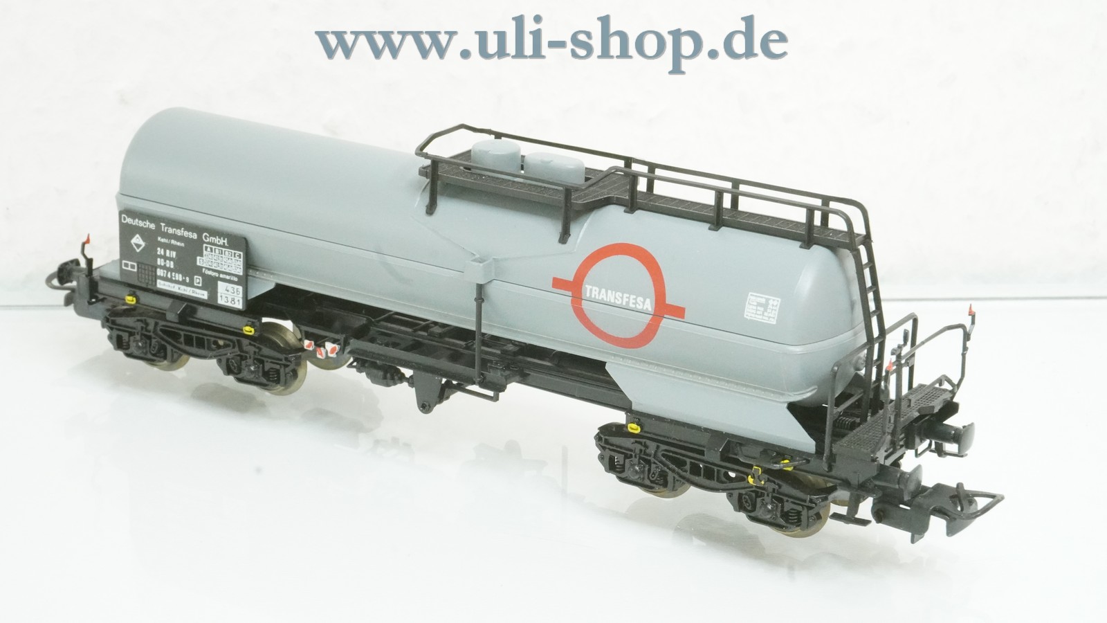 Electrotren H0 Güterwagen mit der Artikelnummer 5420 Kesselwagen TRANSFESA der DB. Der Artikel ist für den Betrieb mit Gleichstrom vorgesehen. Die Originalverpackung ist vorhanden.