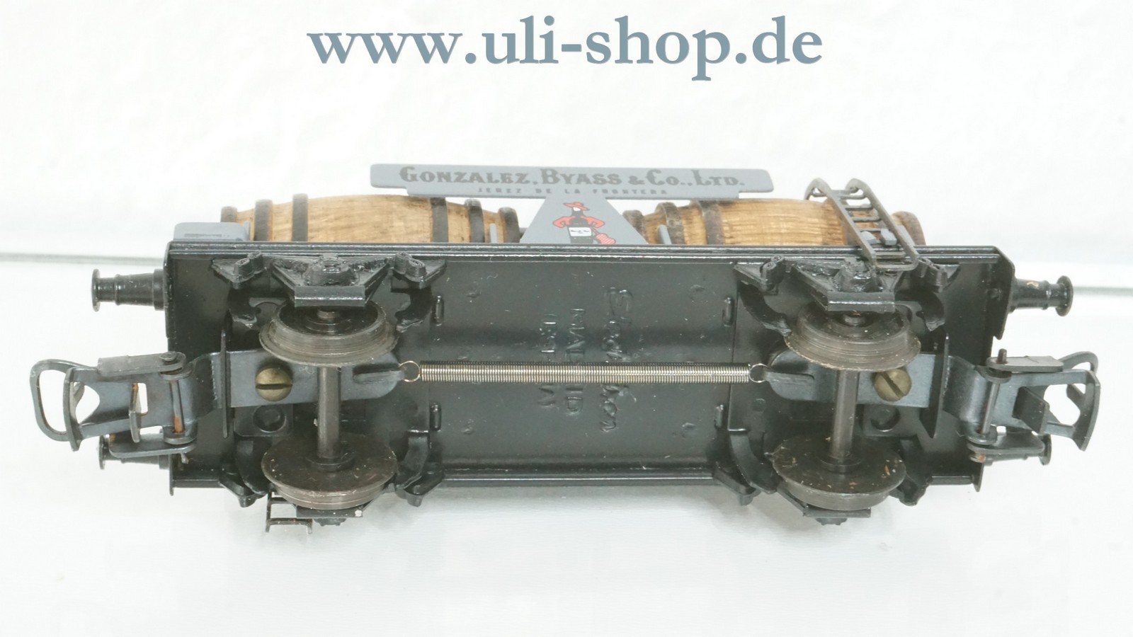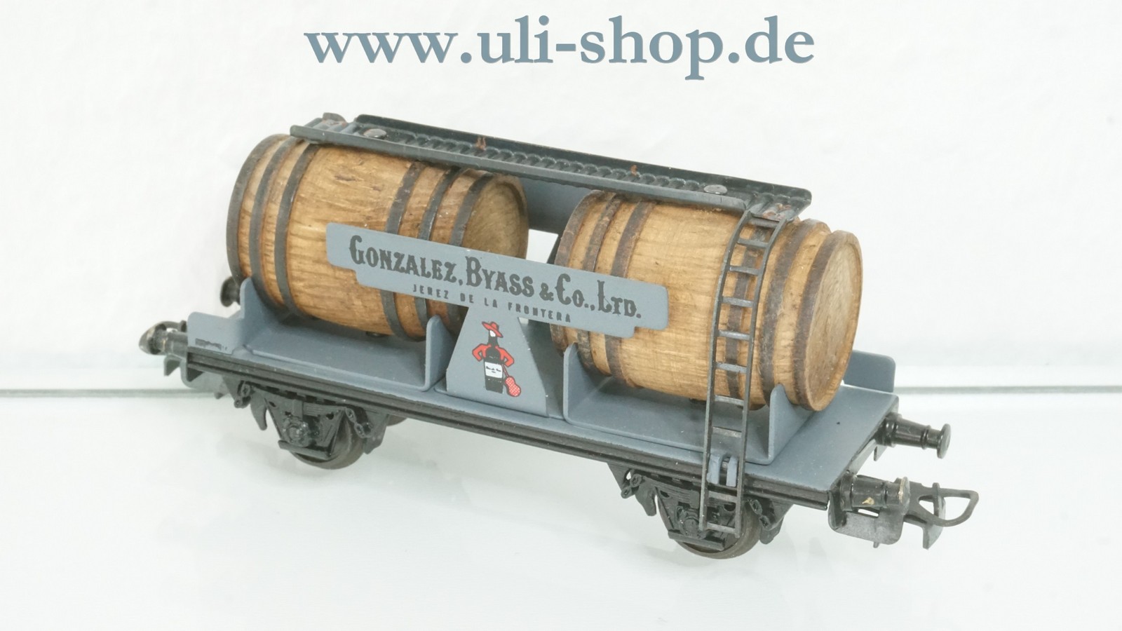 Electrotren H0 Güterwagen mit der Artikelnummer 800 Weinfasswagen Gonzalez Byass ohne Bremserhaus. Der Artikel ist für den Betrieb mit Gleichstrom vorgesehen. Die Originalverpackung ist vorhanden.