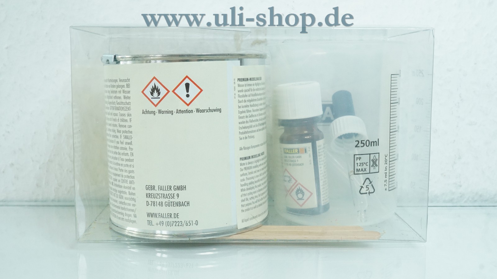 Faller 1,H0,TT,N,Z mit der Artikelnummer 171660 Premium Modellwasser. Die Originalverpackung ist vorhanden. Der Artikel ist noch original verschlossen. Aufgrund der langen Standzeit wissen wir nicht wie die Konsistenz beim verarbeiten ist. Sollte sich beim verarbeiten herausstellen, dass der Artikel nicht mehr zu verwenden ist, werden wir Ihnen den Kaufbetrag selbstverständlich zurückerstatten.