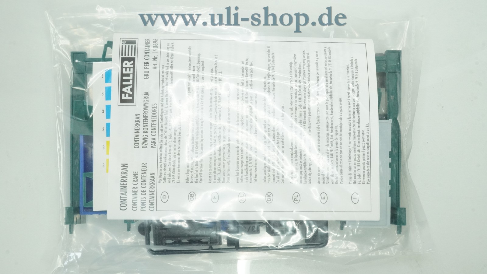 Faller H0 Modellhaus mit der Artikelnummer 190696 Containerkran. Die Originalverpackung ist vorhanden. Die Verpackung des Bausatzes wurde schon einmal geöffnet. Wir können leider nicht mit Sicherheit behaupten, dass alle Teile vollständig vorhanden sind, es sieht aber danach aus. Sollte sich beim Zusammenbauen herausstellen, dass doch Teile fehlen, werden wir Ihnen den Kaufbetrag selbstverständlich zurückerstatten.