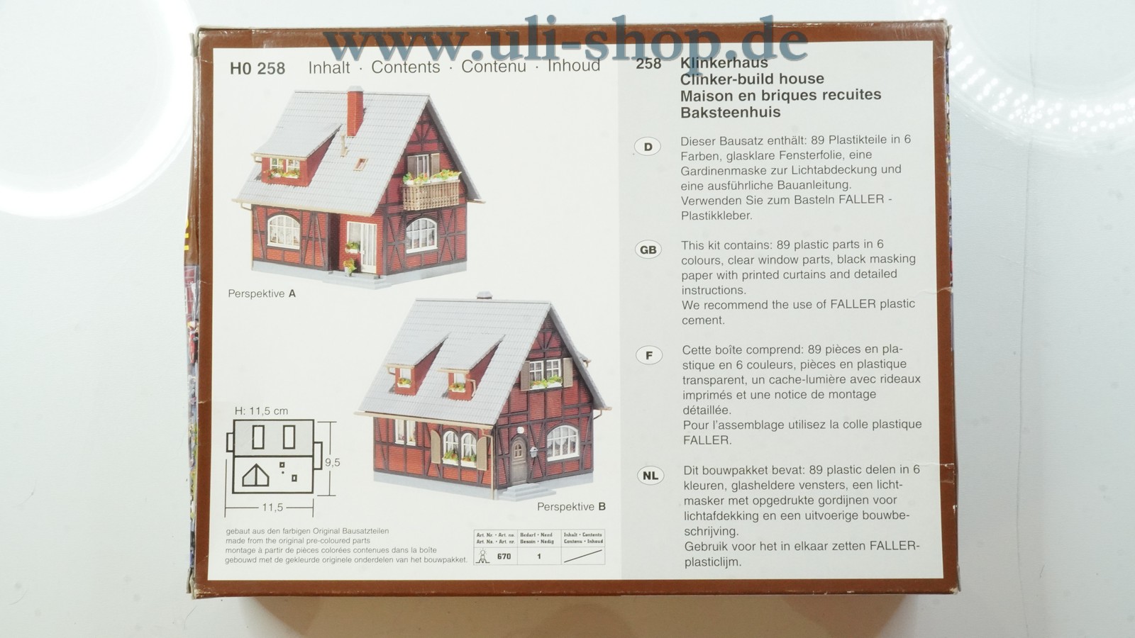 Faller H0 Modellhaus mit der Artikelnummer 258 Klinkerhaus. Die Originalverpackung ist vorhanden.