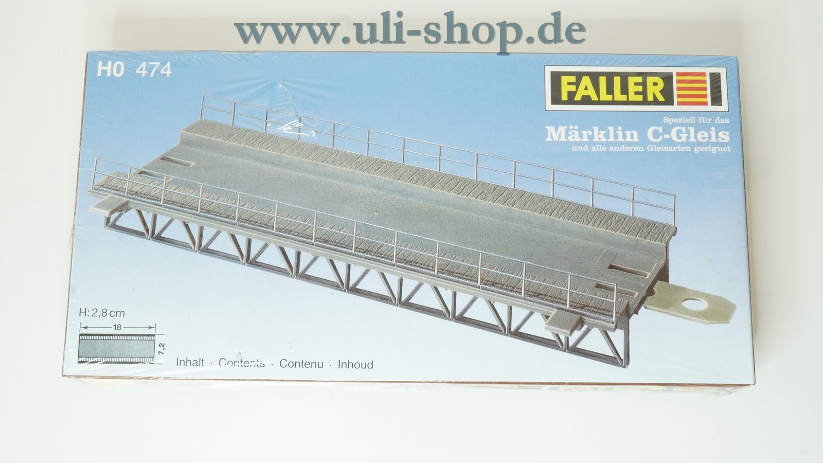 Faller H0 Modellhaus mit der Artikelnummer 474 Brückensteg für Märklin C-Gleis. Die Originalverpackung ist vorhanden.