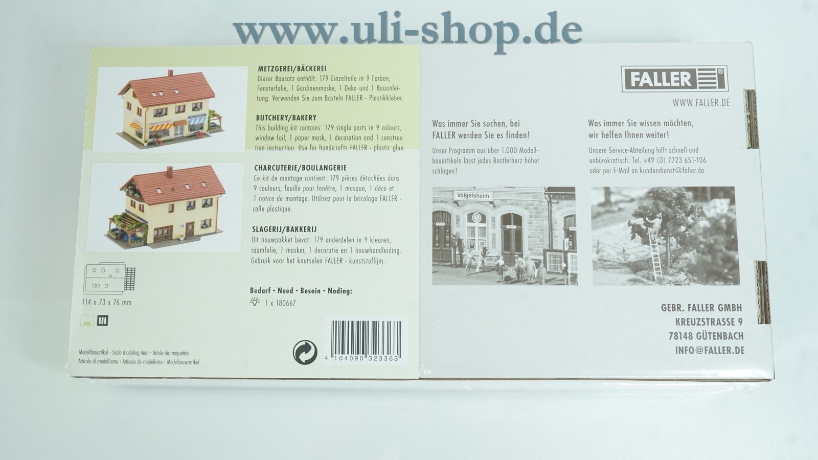 Faller N Modellhaus mit der Artikelnummer 232336 Metzgerei und Bäckerei. Die Originalverpackung ist vorhanden.