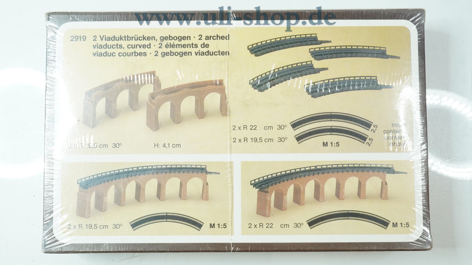Faller Z Brücke mit der Artikelnummer 2919 Zwei Viaduktbrücken gebogen. Die Originalverpackung ist vorhanden.