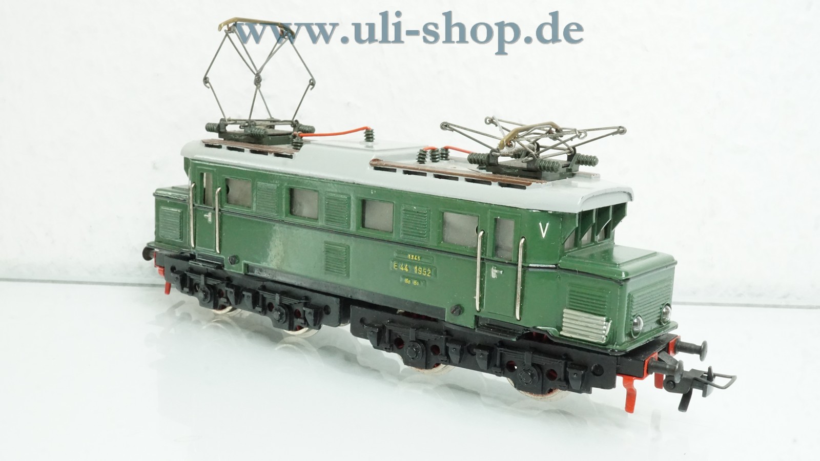 Fleischmann H0 E-Lok mit der Artikelnummer 1345 Br. E44 1952. Der Artikel ist für den Betrieb mit Gleichstrom vorgesehen. Die Lok ist analog, sie kann daher nicht auf digital gesteuerten Anlagen fahren. Die Originalverpackung ist leider nicht mehr vorhanden.