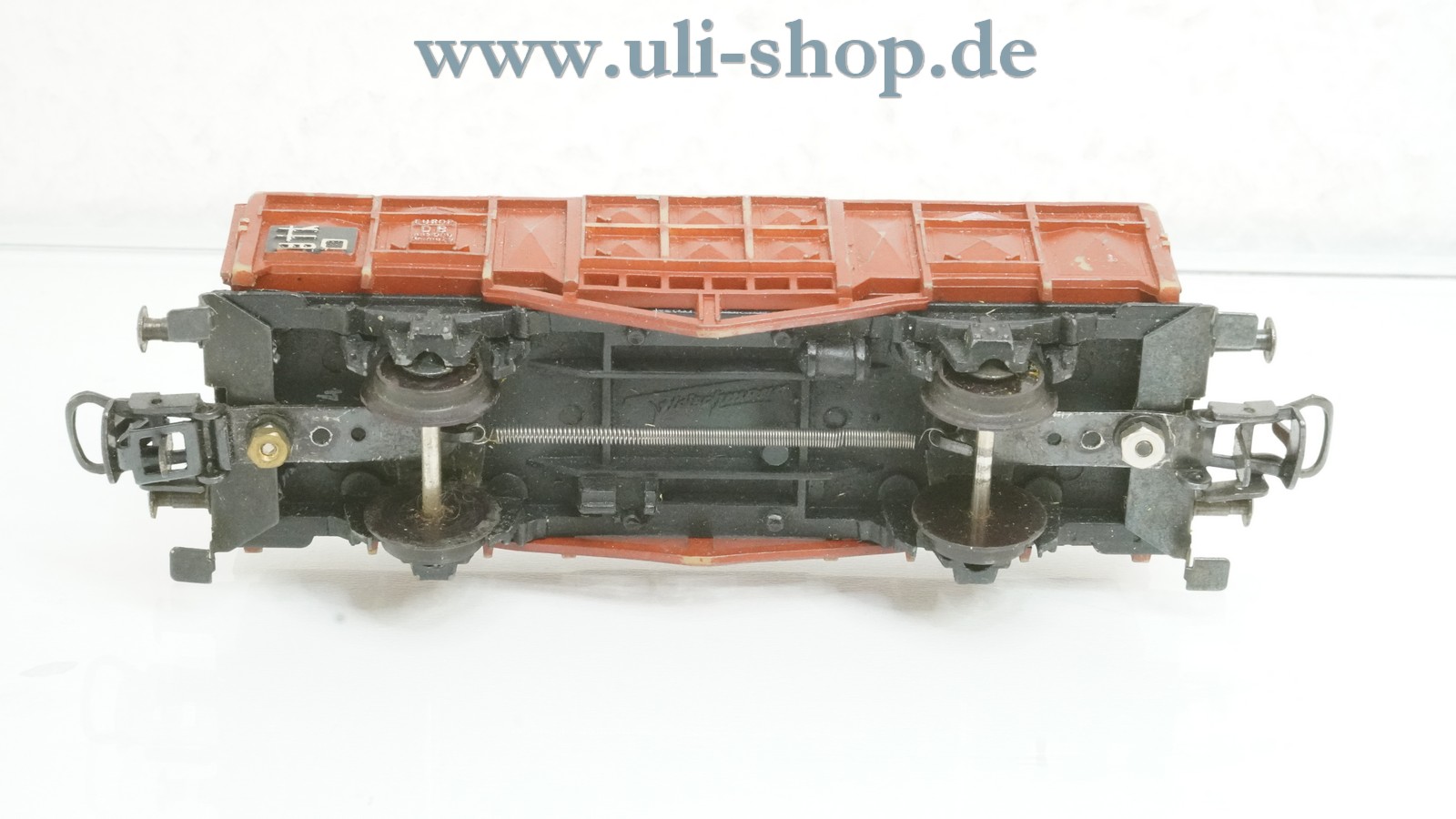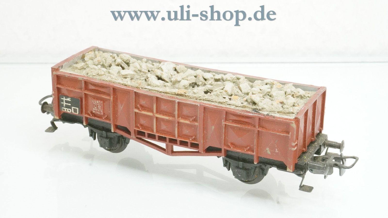Fleischmann H0 Güterwagen mit der Artikelnummer 1455 Hochbordwagen beladen der DB. Der Artikel ist für den Betrieb mit Gleichstrom vorgesehen. Die Originalverpackung ist vorhanden.
