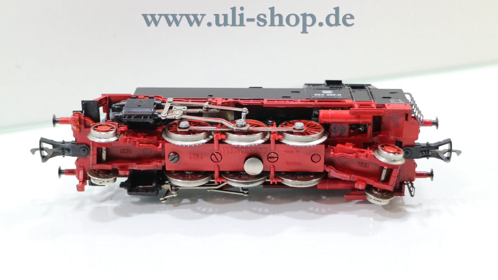 Fleischmann H0 Dampflok mit der Artikelnummer 4064 Br. 064 389-0 der DB. Der Artikel ist für den Betrieb mit Gleichstrom vorgesehen. Die Lok ist analog, sie kann daher nicht auf digital gesteuerten Anlagen fahren. Die Originalverpackung ist vorhanden.