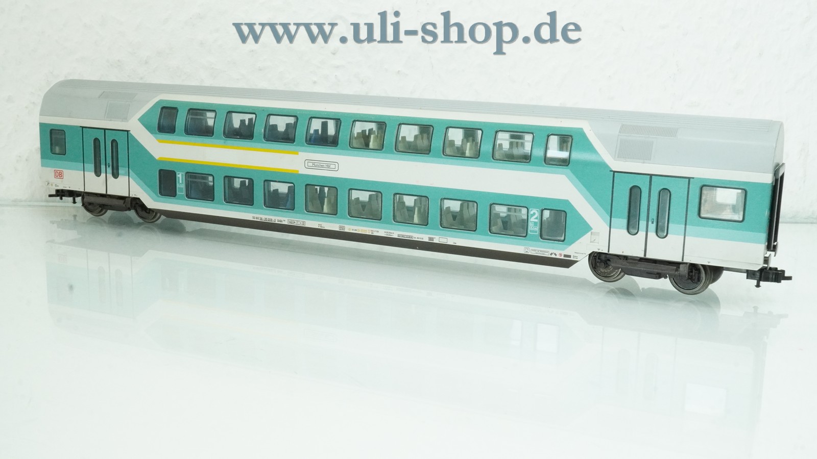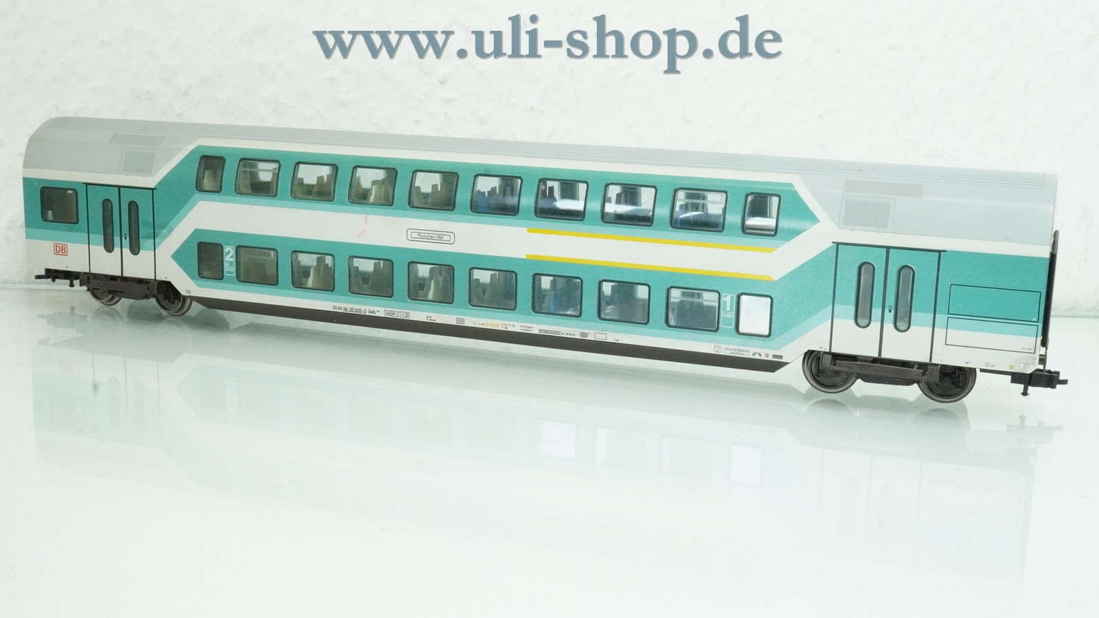 Fleischmann H0 Personenwagen mit der Artikelnummer 5121 K Doppelstockwagen Mintgrün 1./2. Klasse der DB-AG. Der Artikel ist für den Betrieb mit Wechselstrom vorgesehen. Die Originalverpackung ist vorhanden.