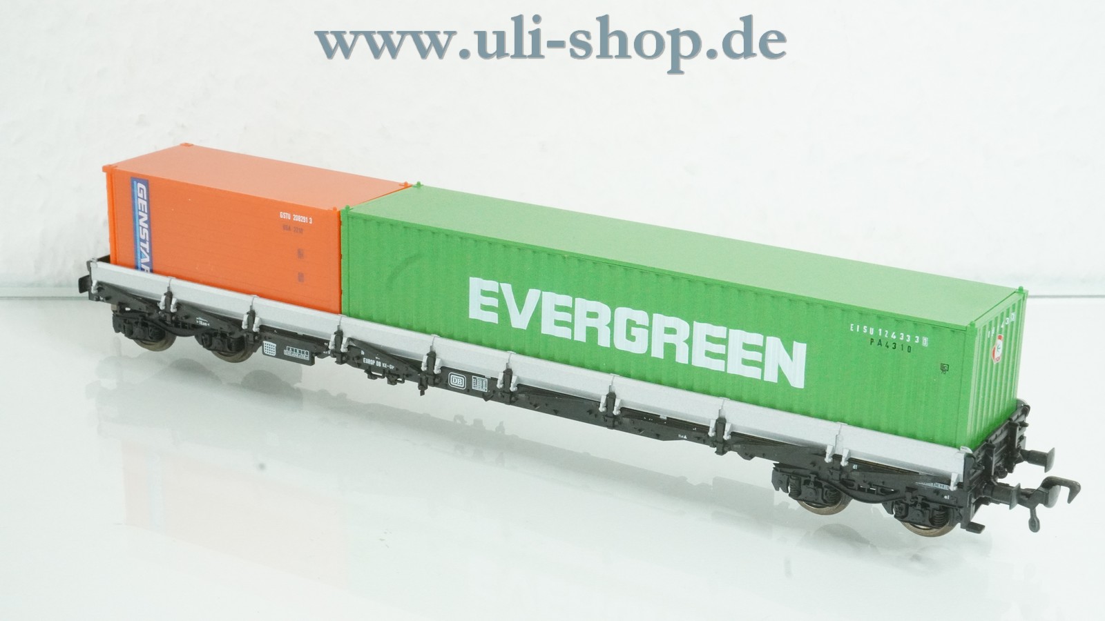 Fleischmann H0 Güterwagen mit der Artikelnummer 5249K Schwenkrungenwagen beladen mit 2 Container der DB. Der Artikel ist für den Betrieb mit Gleichstrom vorgesehen. Die Originalverpackung ist vorhanden. NEM Schacht mit KK Kulisse und Fleischmann Hakenkupplung.