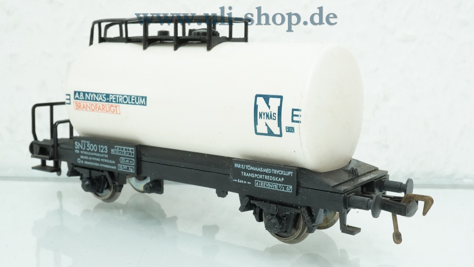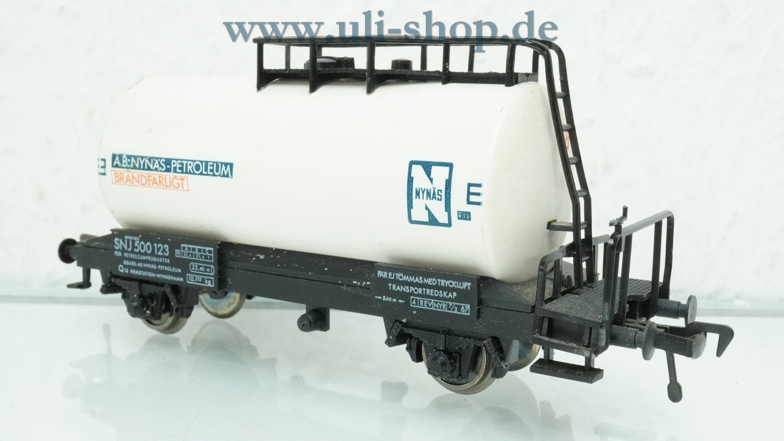 Fleischmann H0 Güterwagen mit der Artikelnummer 5405 Kesselwagen Nynäs-Petroleum der SNJ. Der Artikel ist für den Betrieb mit Gleichstrom vorgesehen. Die Originalverpackung ist leider nicht mehr vorhanden.