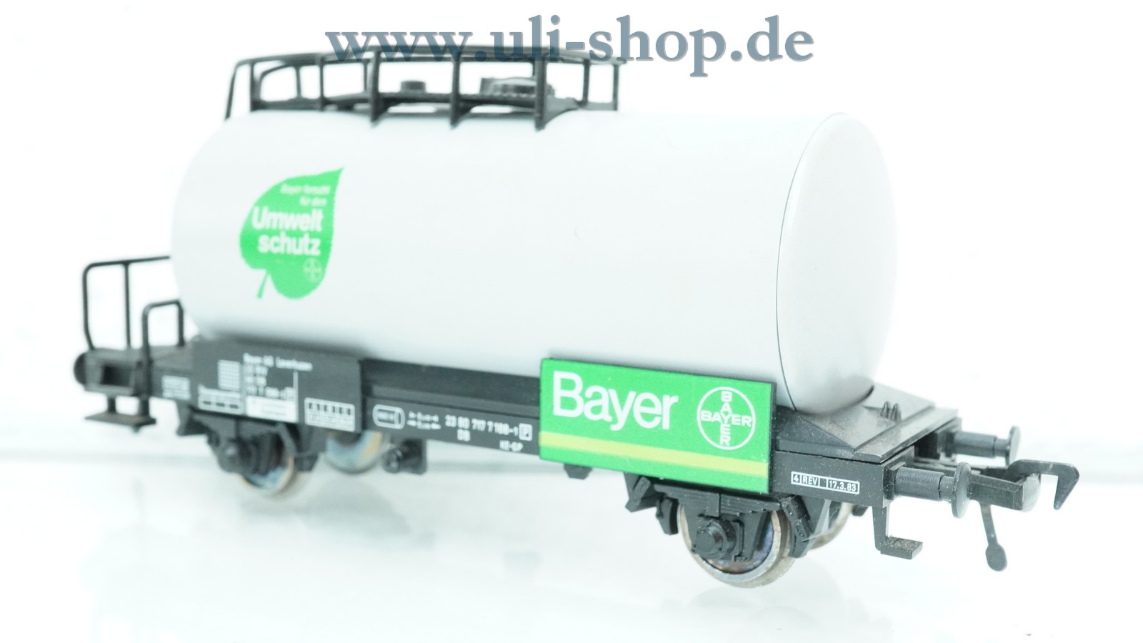 Fleischmann H0 Güterwagen mit der Artikelnummer 5409 Kesselwagen Bayer Umweltschutz der DB. Der Artikel ist für den Betrieb mit Gleichstrom vorgesehen. Die Originalverpackung ist leider nicht mehr vorhanden.