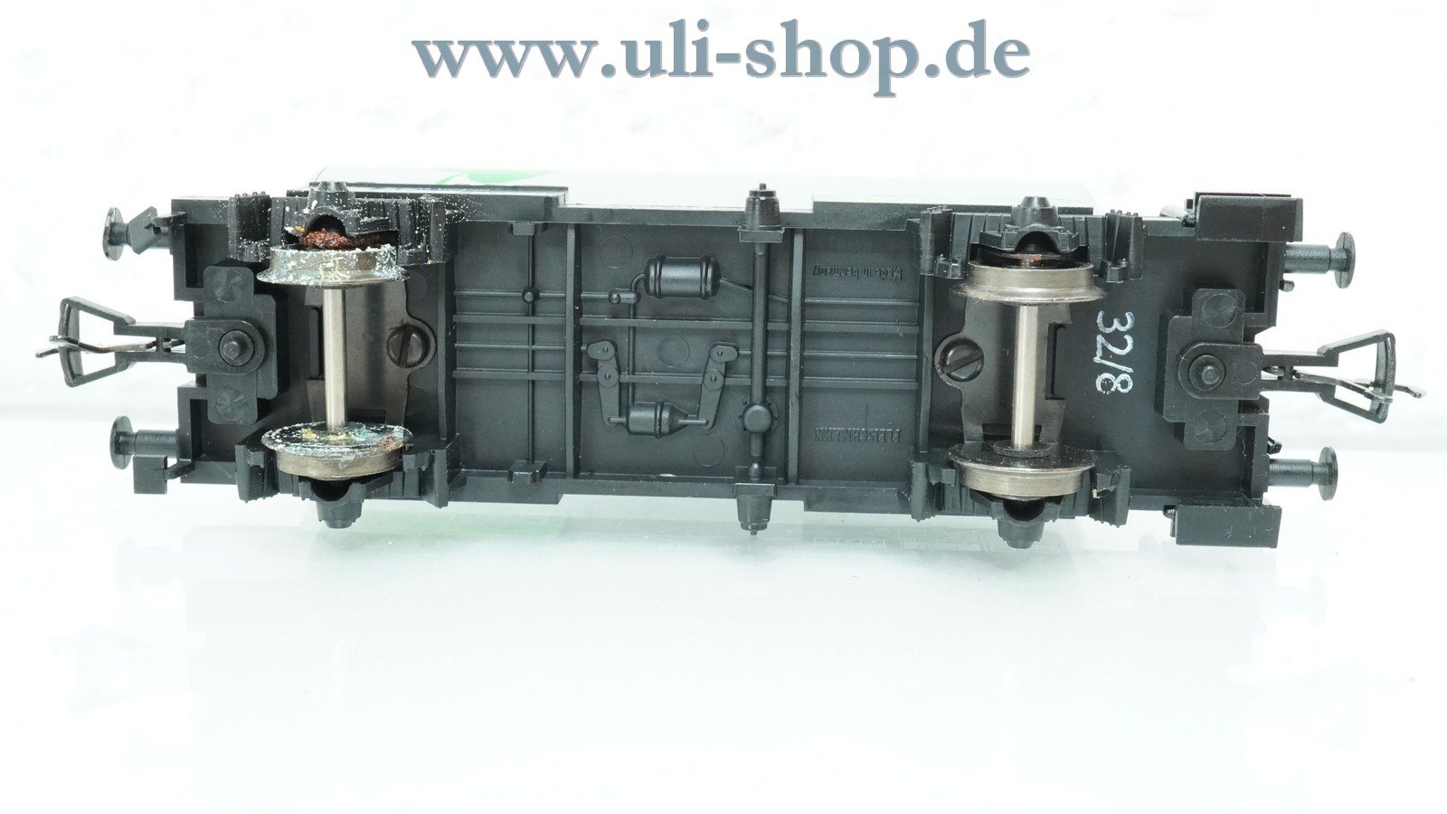 Den optischen Zustand würde ich als bespielt/gebraucht mit normalen Gebrauchsspuren (durch Spielbetrieb) bezeichnen. Eine Radsatzhalterung ist stark verrostet. Der Artikel ist ein wenig verschmutzt.