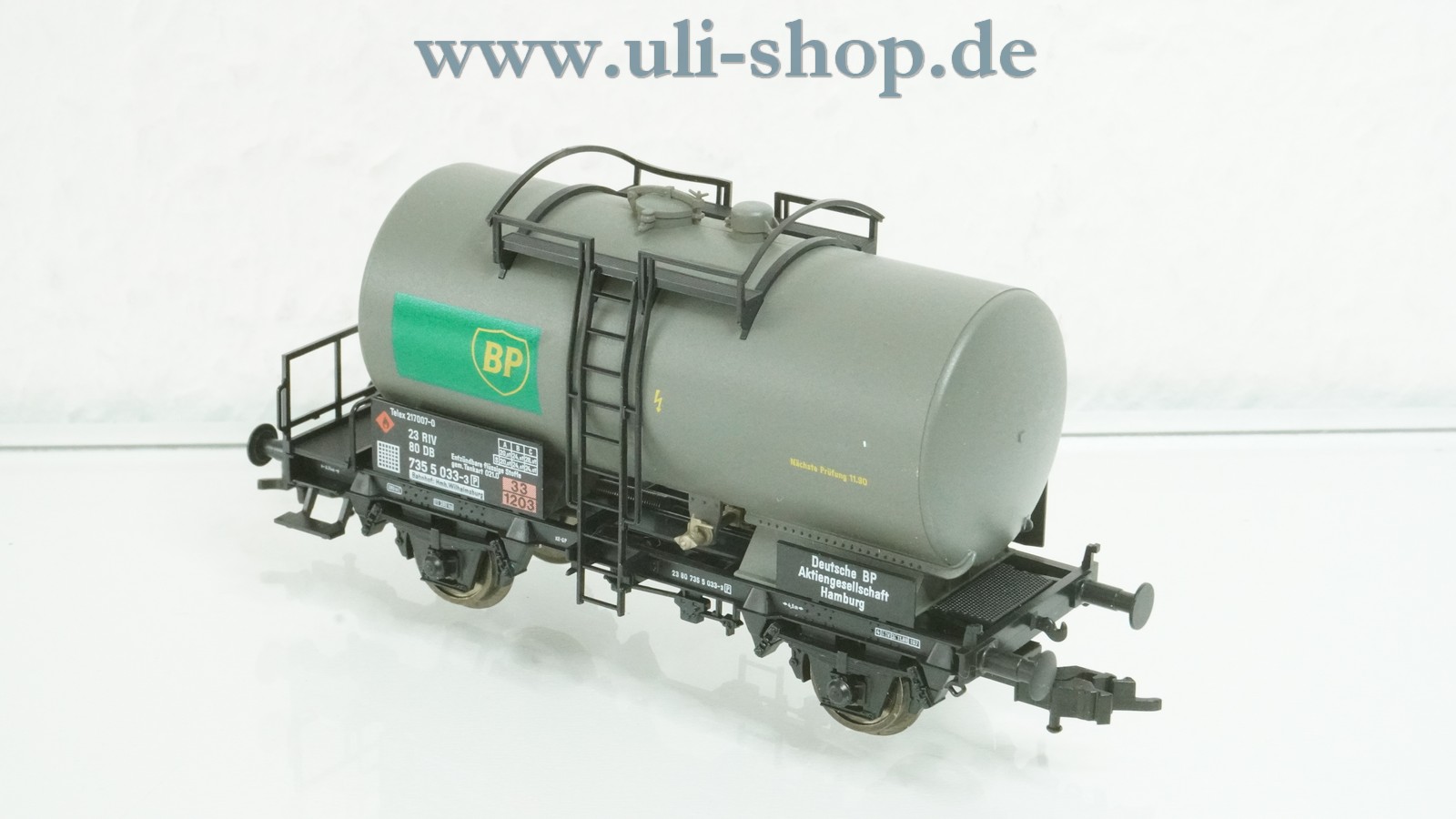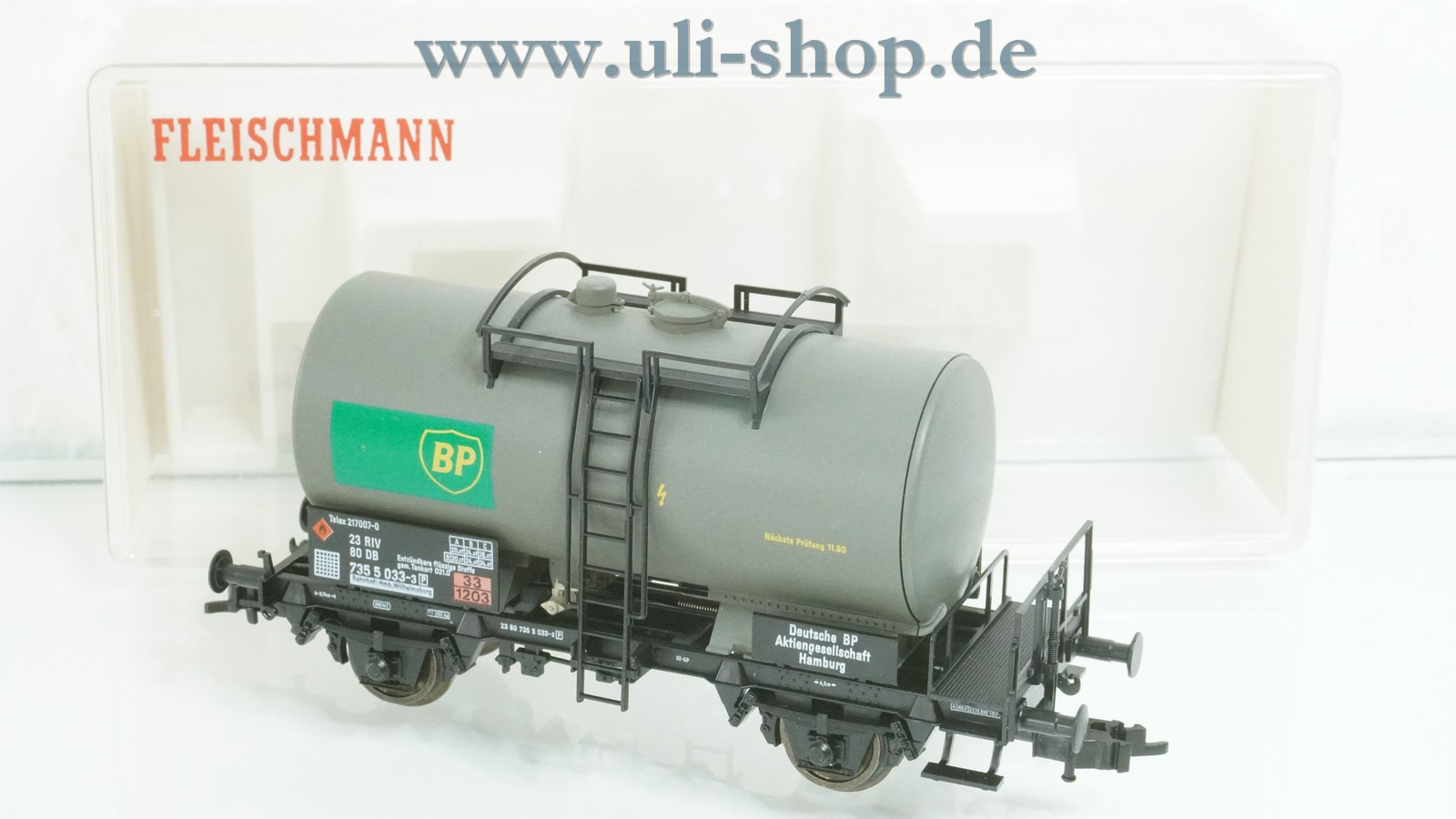 Fleischmann H0 Güterwagen mit der Artikelnummer 5412K Kesselwagen BP der DB. Der Artikel ist für den Betrieb mit Gleichstrom vorgesehen. Die Originalverpackung ist vorhanden.