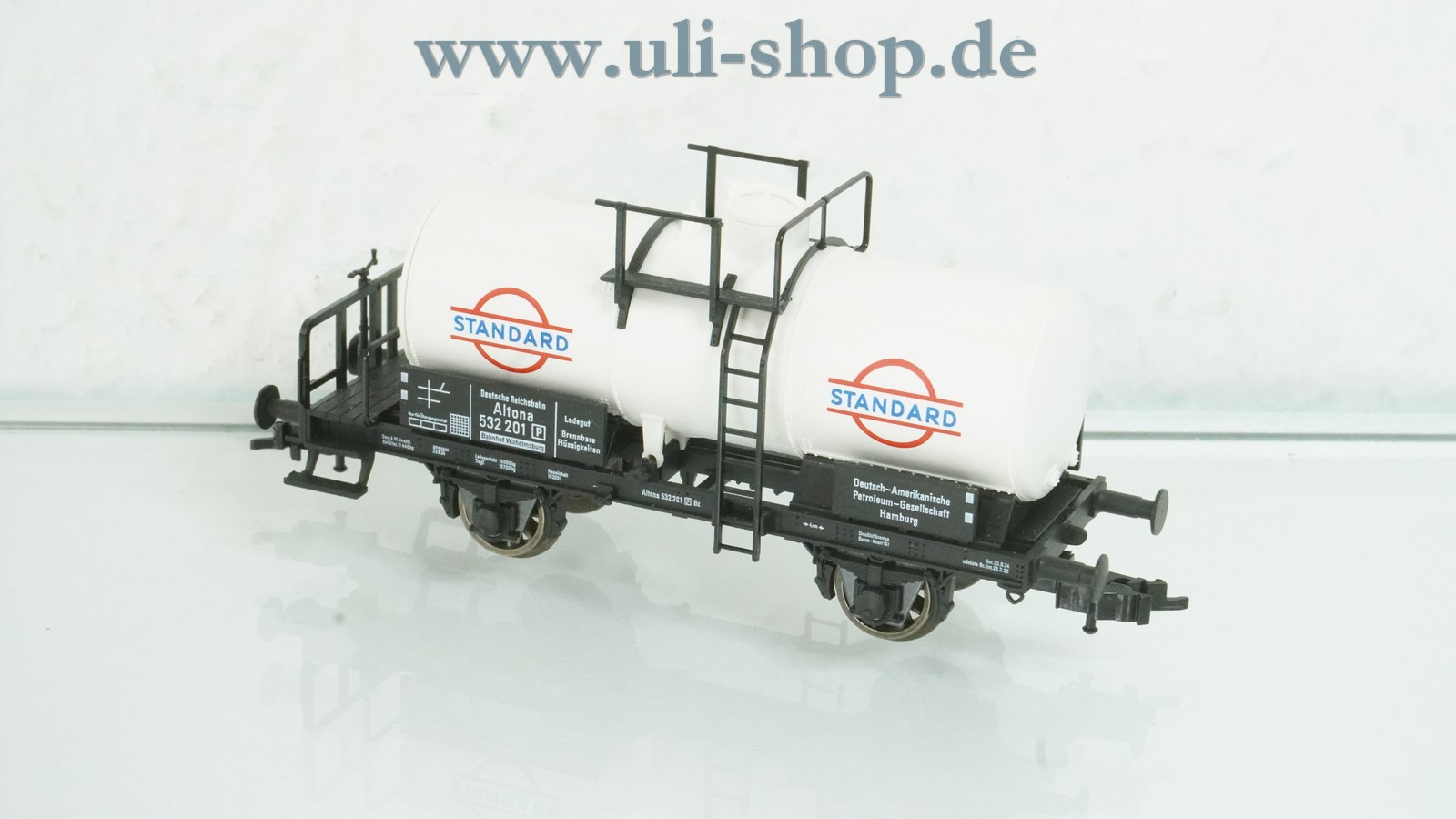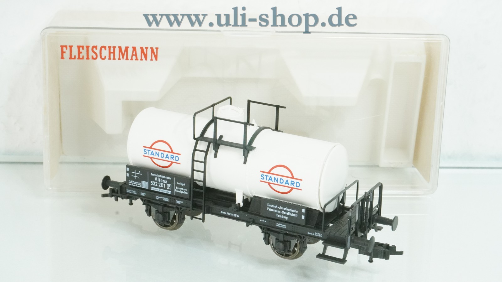 Fleischmann H0 Güterwagen mit der Artikelnummer 5422K Kesselwagen 2-achsig Standart der DR. Der Artikel ist für den Betrieb mit Gleichstrom vorgesehen. Die Originalverpackung ist vorhanden.