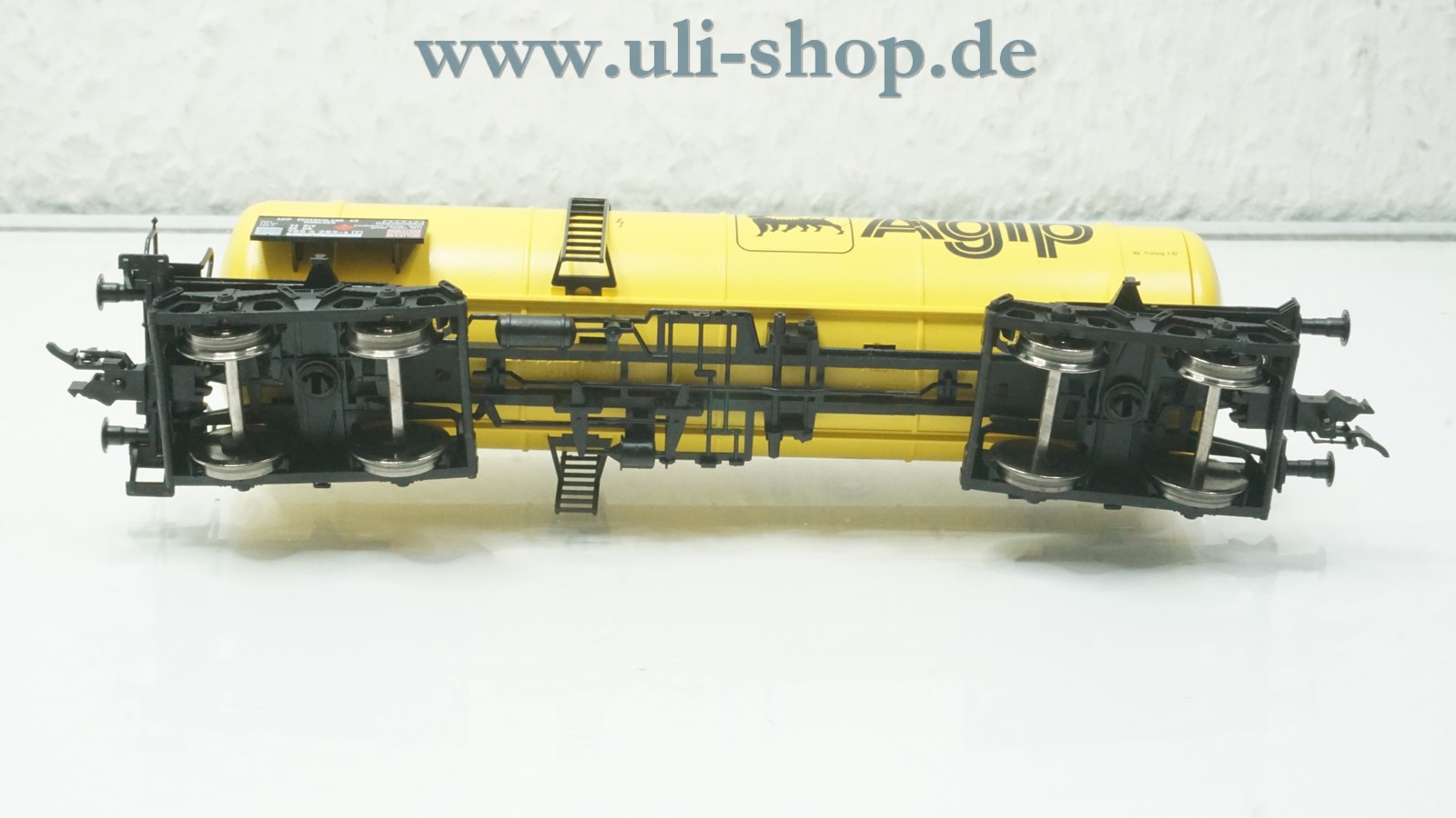 Fleischmann H0 Güterwagen mit der Artikelnummer 5479 K Kesselwagen Agip der DB. Der Artikel ist für den Betrieb mit Gleichstrom vorgesehen. Die Originalverpackung ist vorhanden.