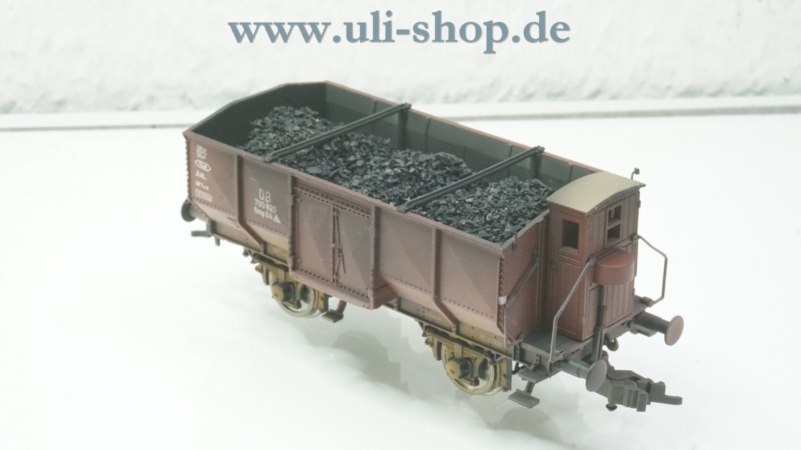 Fleischmann H0 Güterwagen mit der Artikelnummer 590107 K Kohlewagen mit Bremserhaus der DB. Der Artikel ist für den Betrieb mit Gleichstrom vorgesehen. Die Originalverpackung ist vorhanden. Der Wagen ist mit Echtkohle beladen und farblich gealtert.