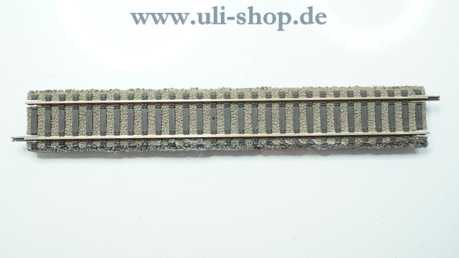 Den optischen Zustand würden wir als bespielt/gebraucht mit normalen Gebrauchsspuren (durch Spielbetrieb) bezeichnen. Der Artikel weist normale Gebrauchsspuren auf. Es können an dem Gleis kleinere Kratzer, kleinere Farb- und Kleb-Reste sowie etwas Rost vorhanden sein. Es kann auch sein, dass die steckbaren Gleisverbinder fehlen.