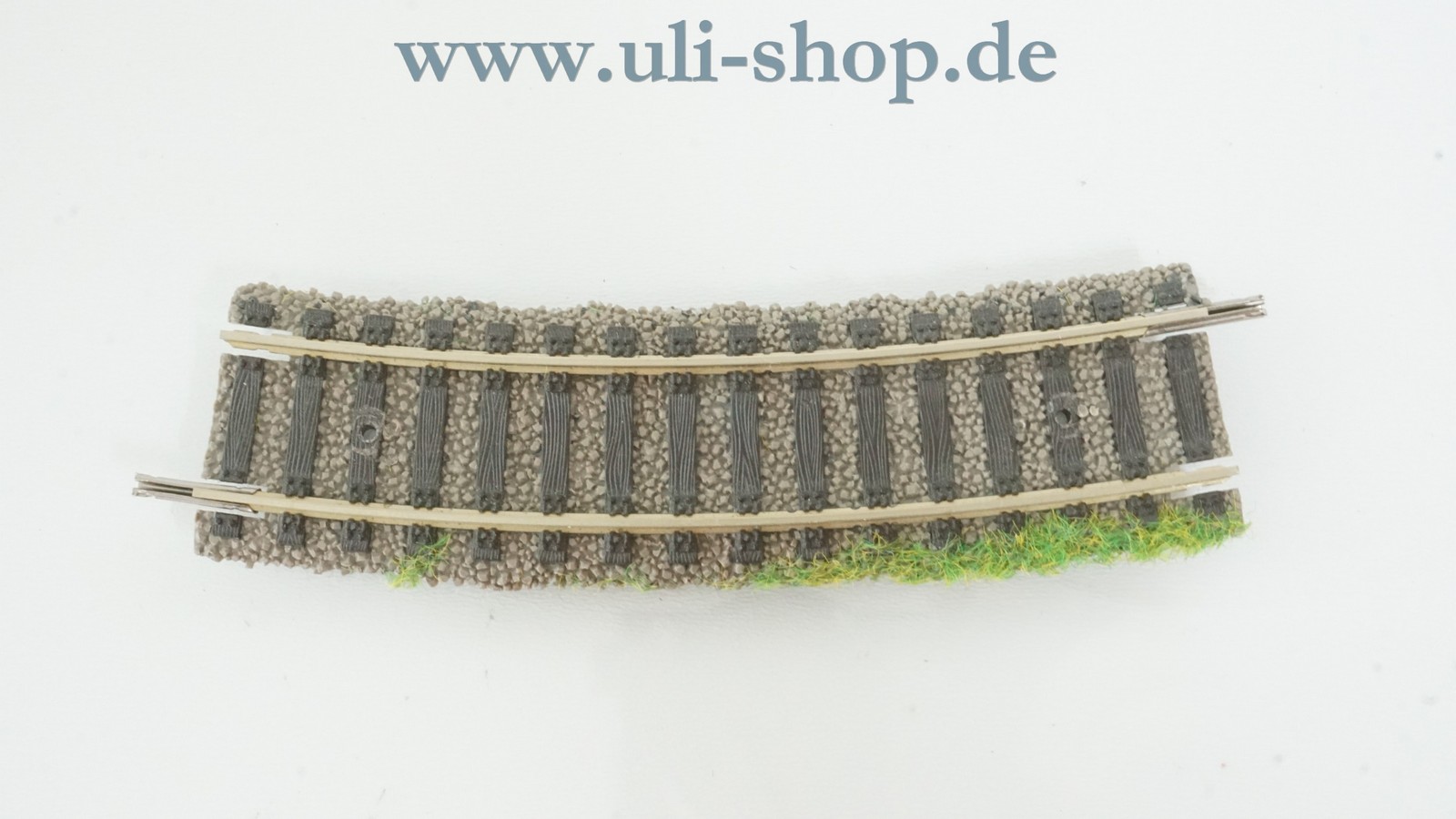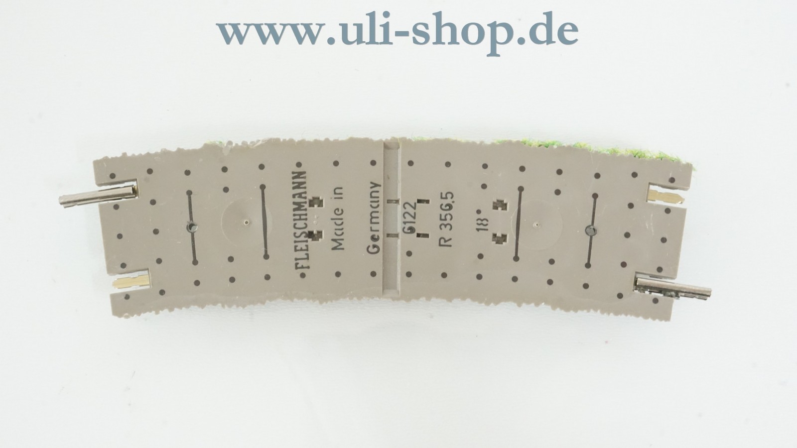 Fleischmann H0 Gleismaterial mit der Artikelnummer 6122 Profigleis gebogen R 356,6. Der Artikel ist für den Betrieb mit Gleichstrom vorgesehen. Die Originalverpackung ist leider nicht mehr vorhanden.