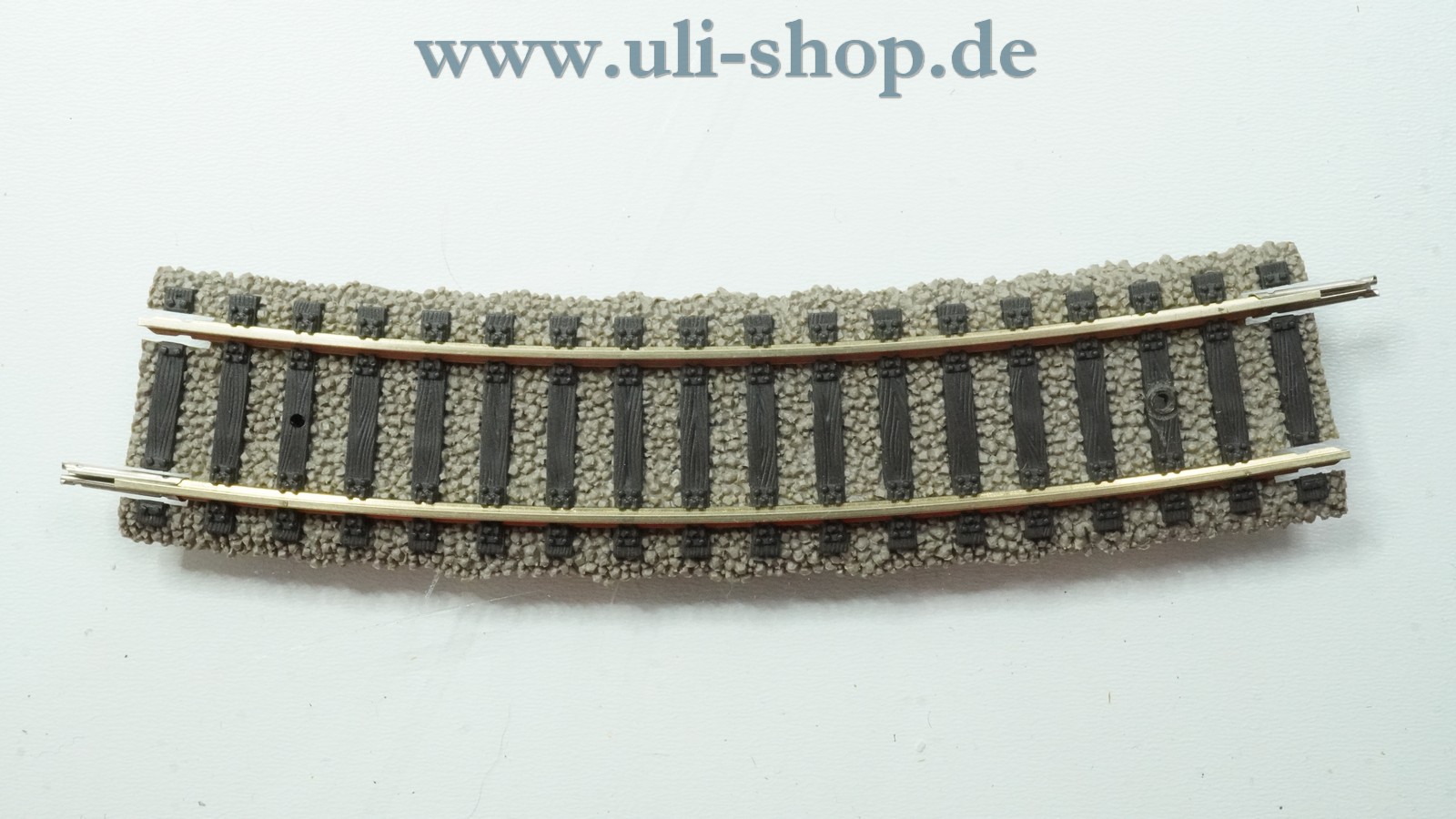 Fleischmann H0 Gleismaterial mit der Artikelnummer 6127 Profi-Gleis gebogen 1/2 R:420 mm 18°. Der Artikel wird ohne Originalverpackung geliefert.