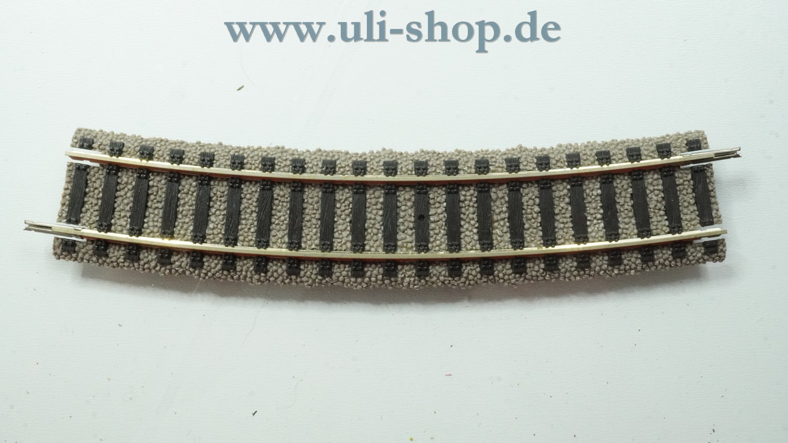 Fleischmann H0 Gleismaterial mit der Artikelnummer 6133 Profi-Gleis gebogen 1/1 R:547 mm 18°. Der Artikel wird ohne Originalverpackung geliefert.