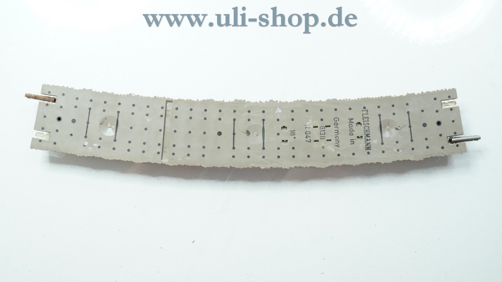 Fleischmann H0 Gleismaterial mit der Artikelnummer 6138 Profi-Gleis gebogen Weichengegenbogen R:647 mm 18°. Der Artikel wird ohne Originalverpackung geliefert.