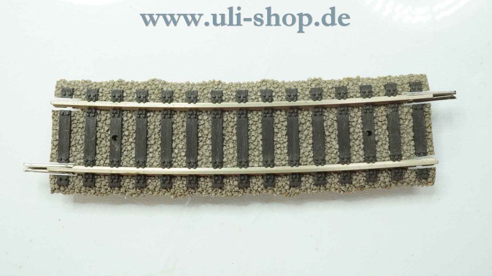 Fleischmann H0 Gleismaterial mit der Artikelnummer 6139 Profi-Gleis gebogen Drehscheibenauffahrt R:788 mm 7,5°. Der Artikel wird ohne Originalverpackung geliefert.