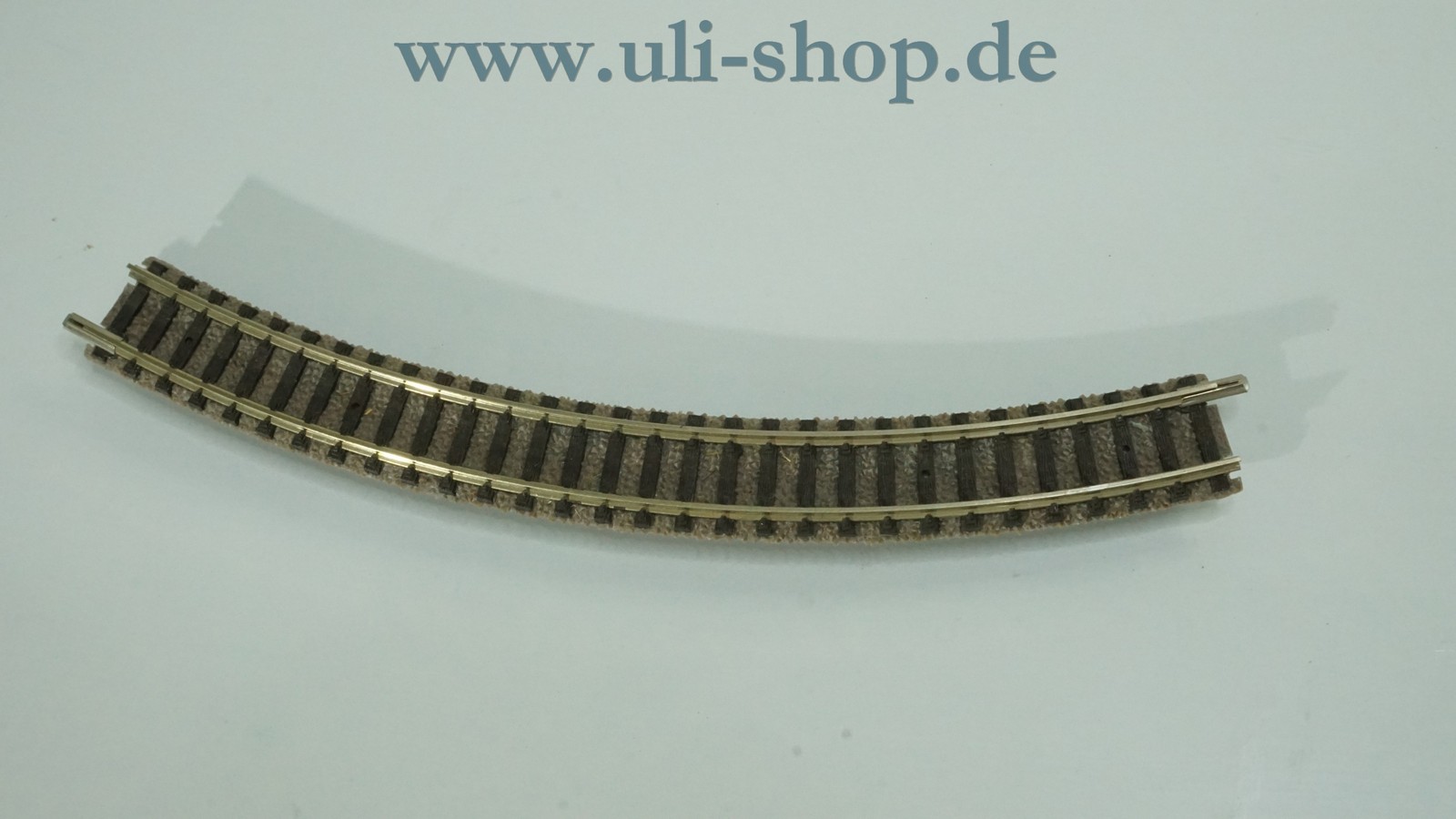 Fleischmann N Profigleis gebogen mit der Artikelnummer 9120 im wenig bespieltem/gebrauchtem Zustand mit leichten Gebrauchsspuren ohne Originalverpackung. Ohne Farb- und Klebreste, ohne Rost sowie ohne Beschädigungen.