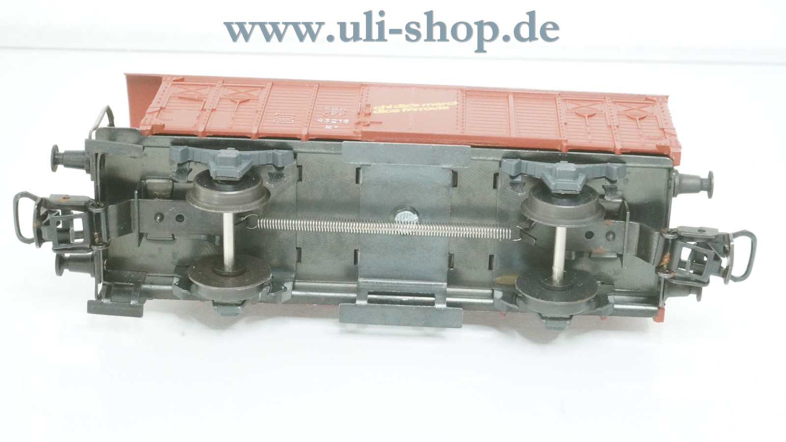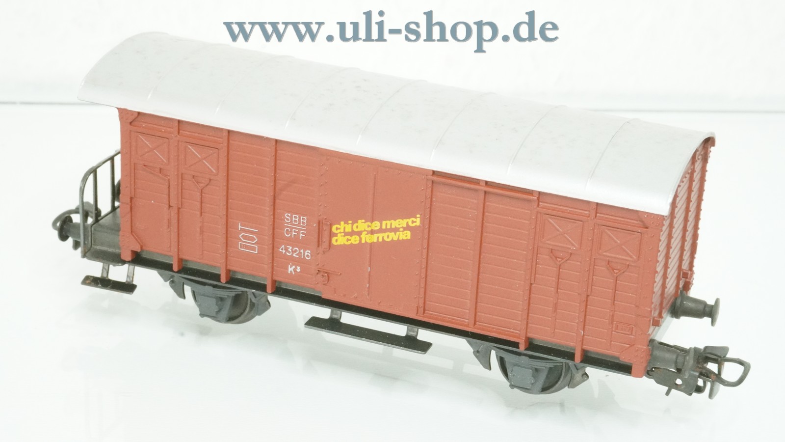 HAG H0 Güterwagen mit der Artikelnummer 305 gedeckt mit Bremserhaus der SBB "für Güter die Bahn" 43216 Guss. Der Artikel ist für den Betrieb mit Gleichstrom vorgesehen. Die Verpackung ist nicht die Originale, sie stammt von einem anderen Artikel.
