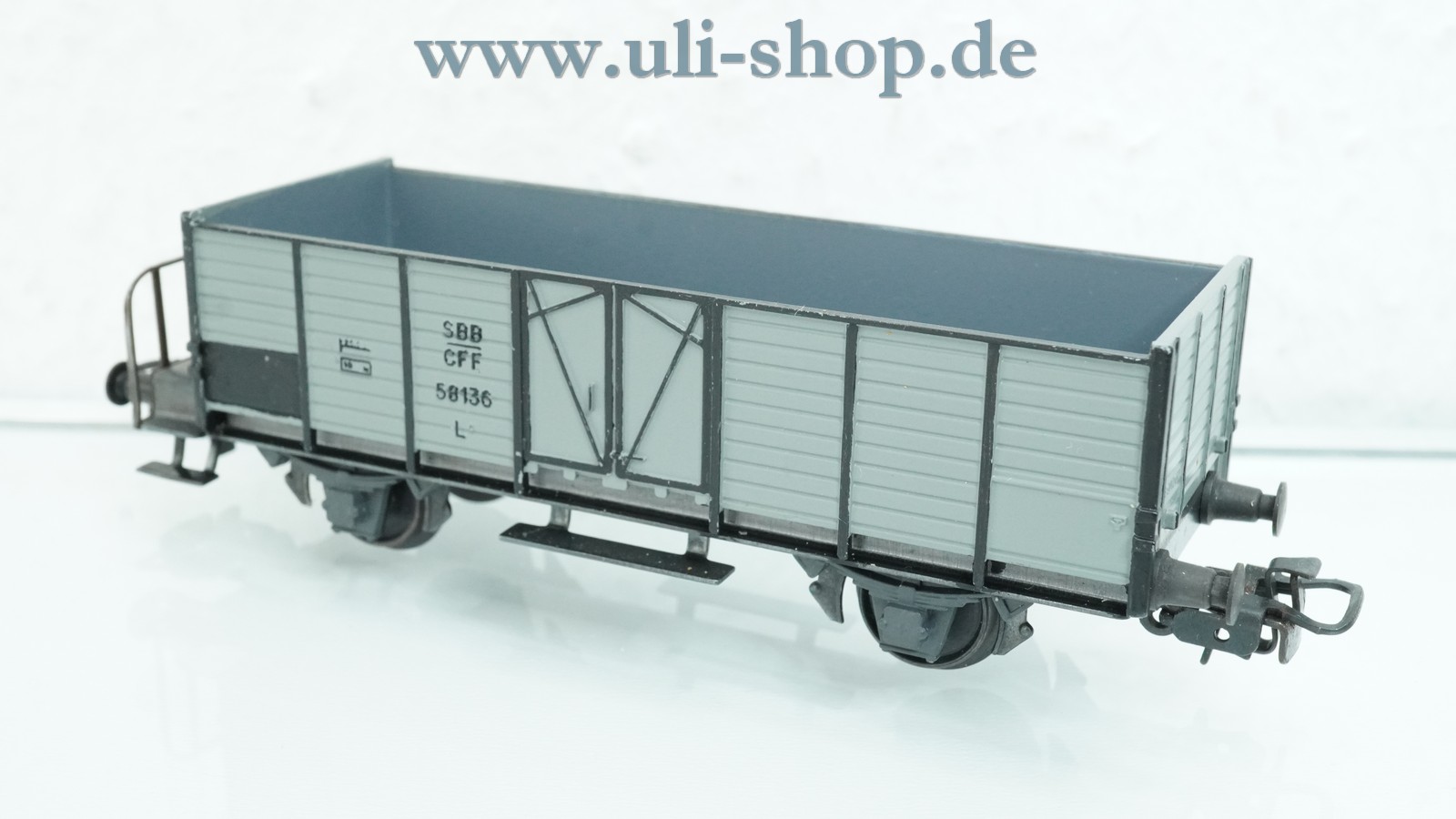 HAG H0 Güterwagen mit der Artikelnummer 325 Hochbordwagen mit Bremserbühne grau der SBB aus Guß. Der Artikel ist für den Betrieb mit Gleichstrom vorgesehen. Die Originalverpackung ist leider nicht mehr vorhanden.