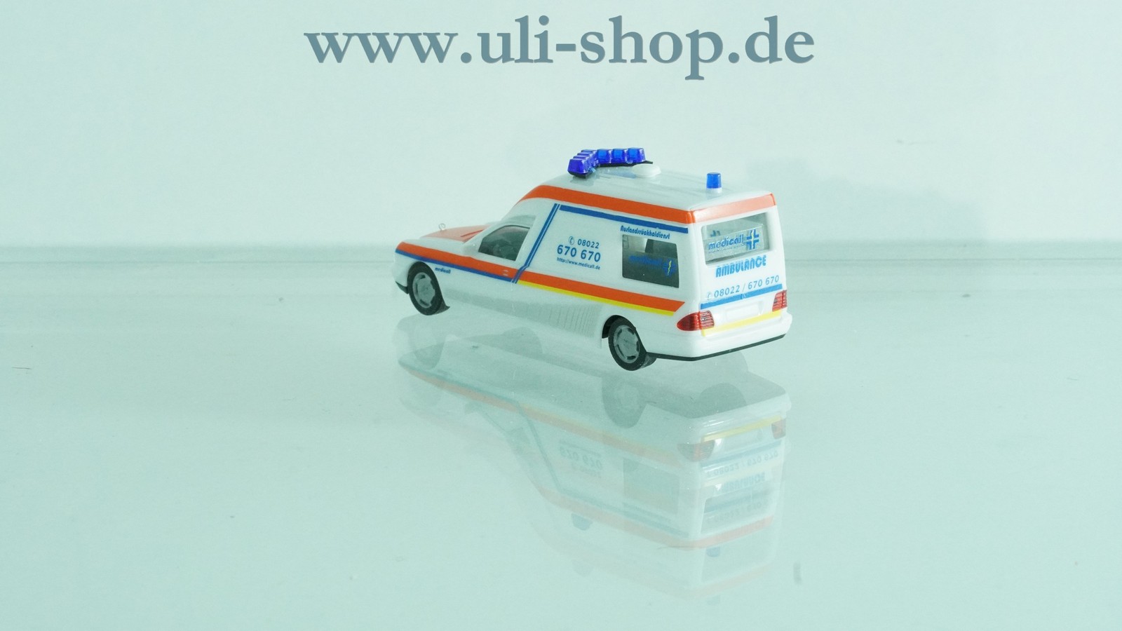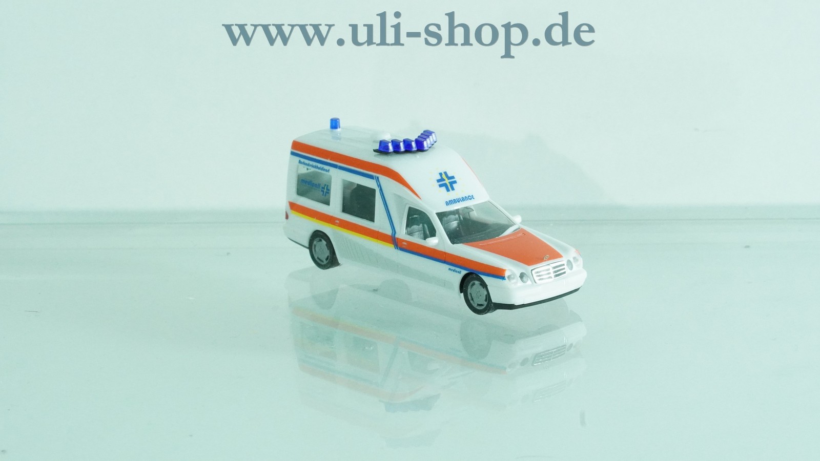 Herpa H0 Modellauto Ambulance Rückholdienst MB. Die Originalverpackung ist leider nicht mehr vorhanden.