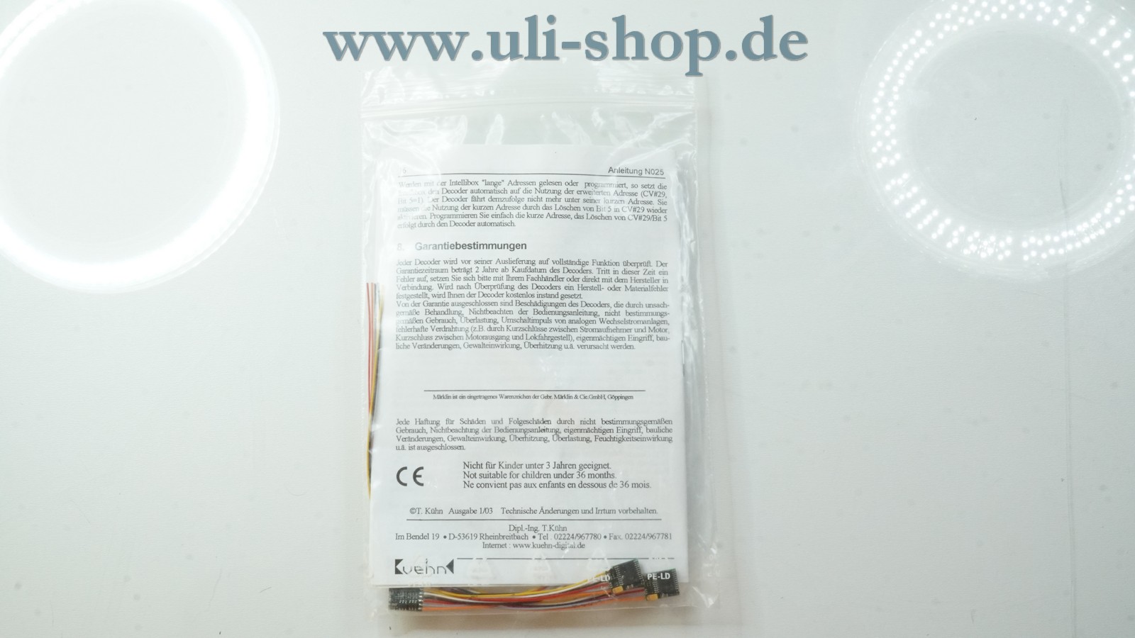 Kühn H0 mit der Artikelnummer N025 NMRA-DCC/Motorola Lok-Decoder mit Lastregelung. Die Originalverpackung ist vorhanden.