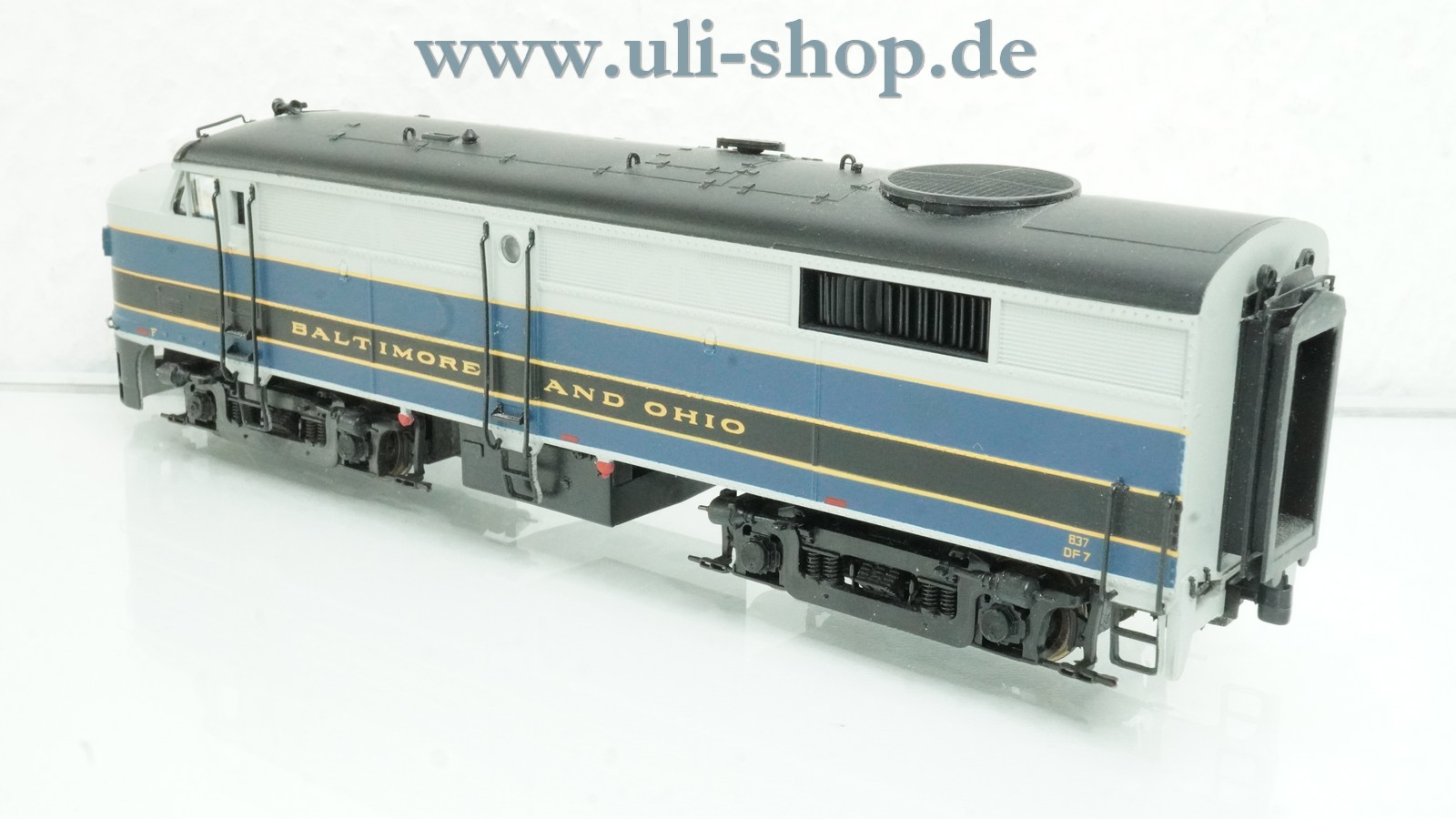 Lifelike H0 Diesellok FA-2 Alco 837 der BALTIMORE AND OHIO Railway. Der Artikel ist für den Betrieb mit Gleichstrom vorgesehen. Die Lok ist analog, sie kann daher nicht auf digital gesteuerten Anlagen fahren. Die Originalverpackung ist leider nicht mehr vorhanden.