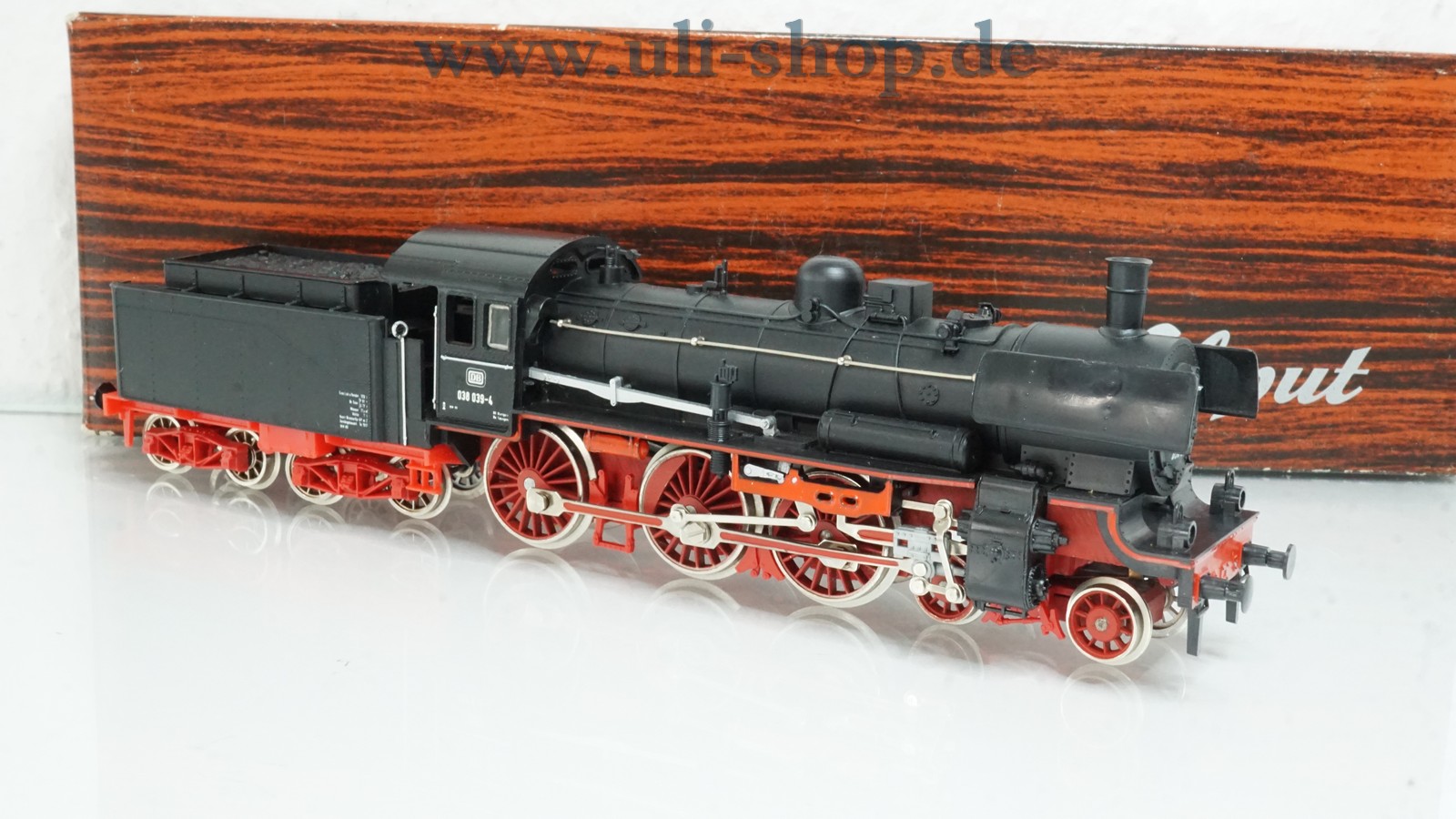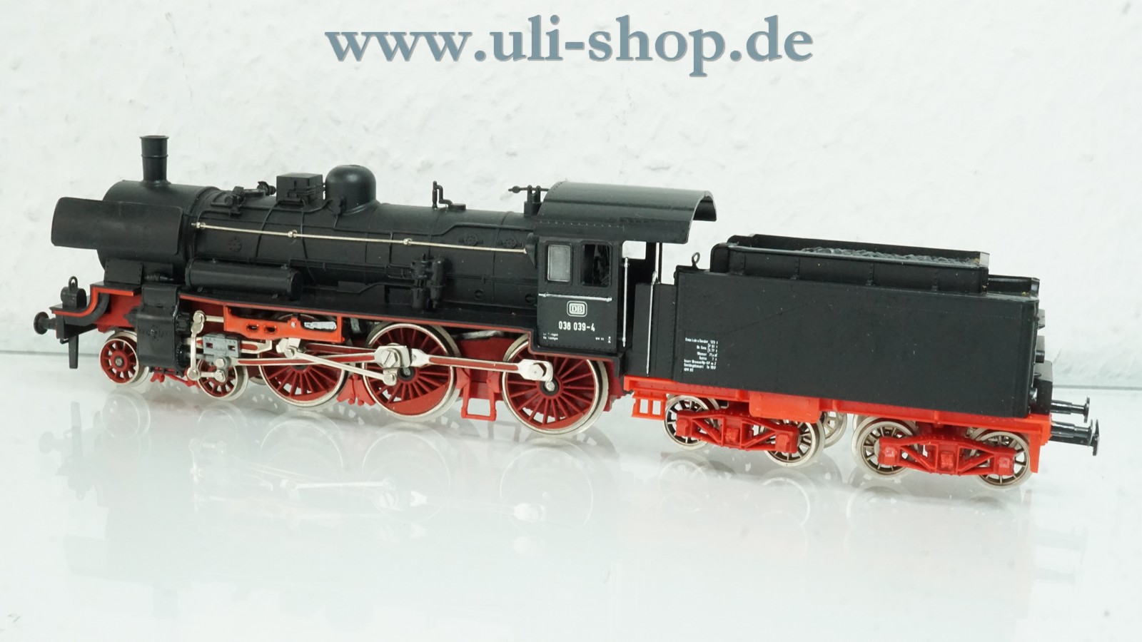 Liliput H0 Dampflok mit der Artikelnummer 10901 Br. 038 039-4 der DB. Der Artikel ist für den Betrieb mit Gleichstrom vorgesehen. Die Lok ist analog, sie kann daher nicht auf digital gesteuerten Anlagen fahren. Die Originalverpackung ist vorhanden, allerdings fehlt der Karton-Einsatz.